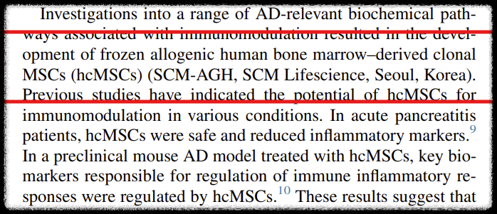 논문을 보면 MCS가 조직 재생 외에도 면역조절에 사용가능하기에 이를 사용해 면역질환인 아토피에 적용해 보았다고 한다. 동물실험에서도 효과를 보였다. 1/2a 임상시험을 진행했다. 사람의 골수, 근육, 지방세포 또는 피부에서 얻어질수 있는 MSC를 사용했다.