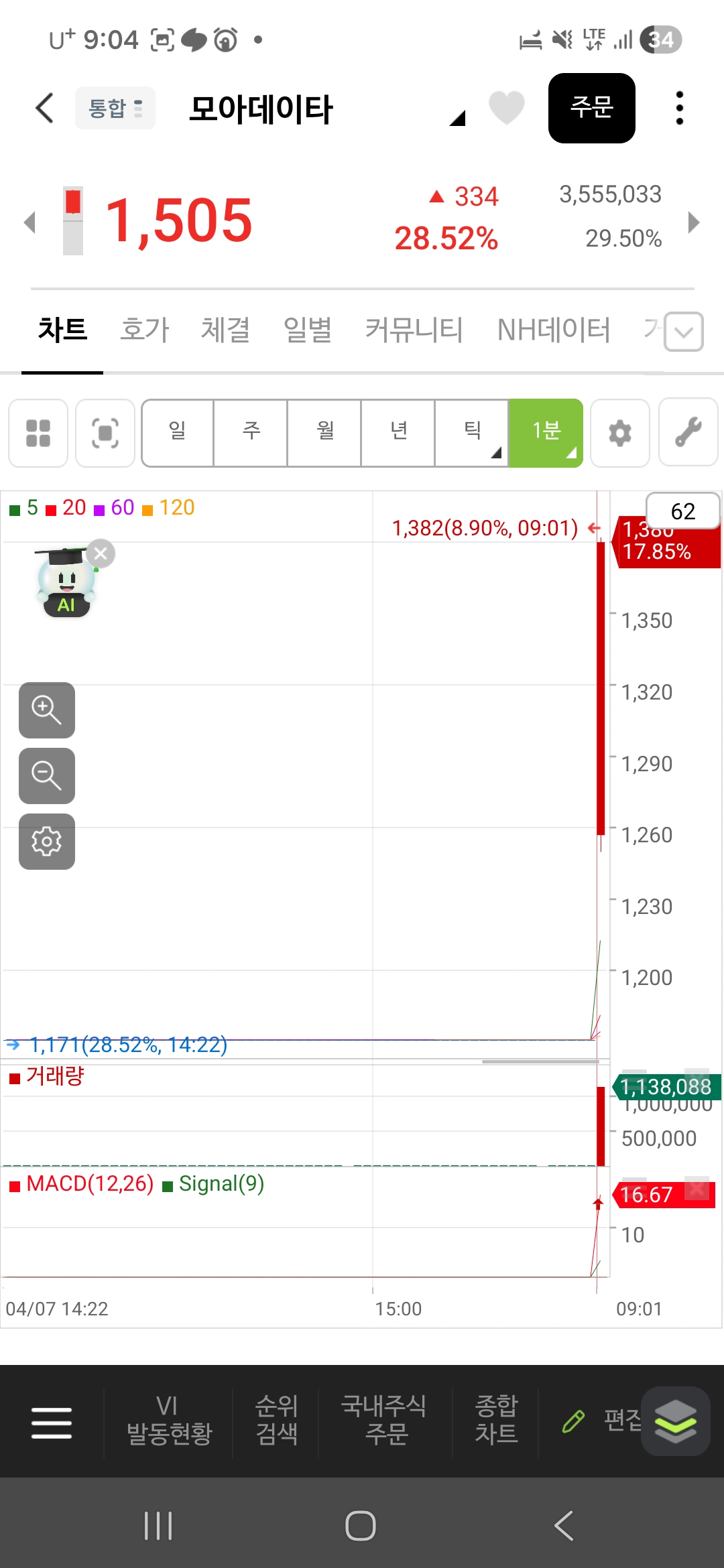 2분 이후 시작하는 종목