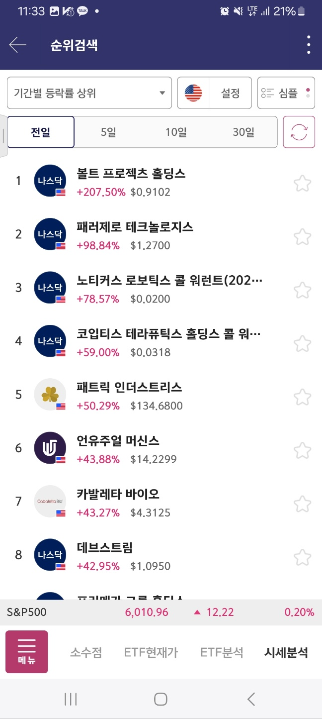 개장시점에 비해 패러제로 테크놀로지가 상승했다. 보이지 않던 선더파워 홀딩스가 올라왔다.
