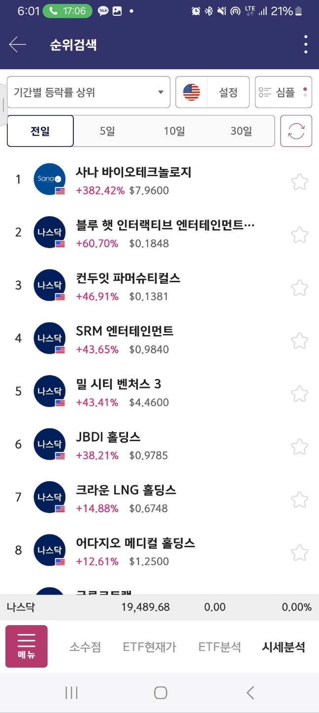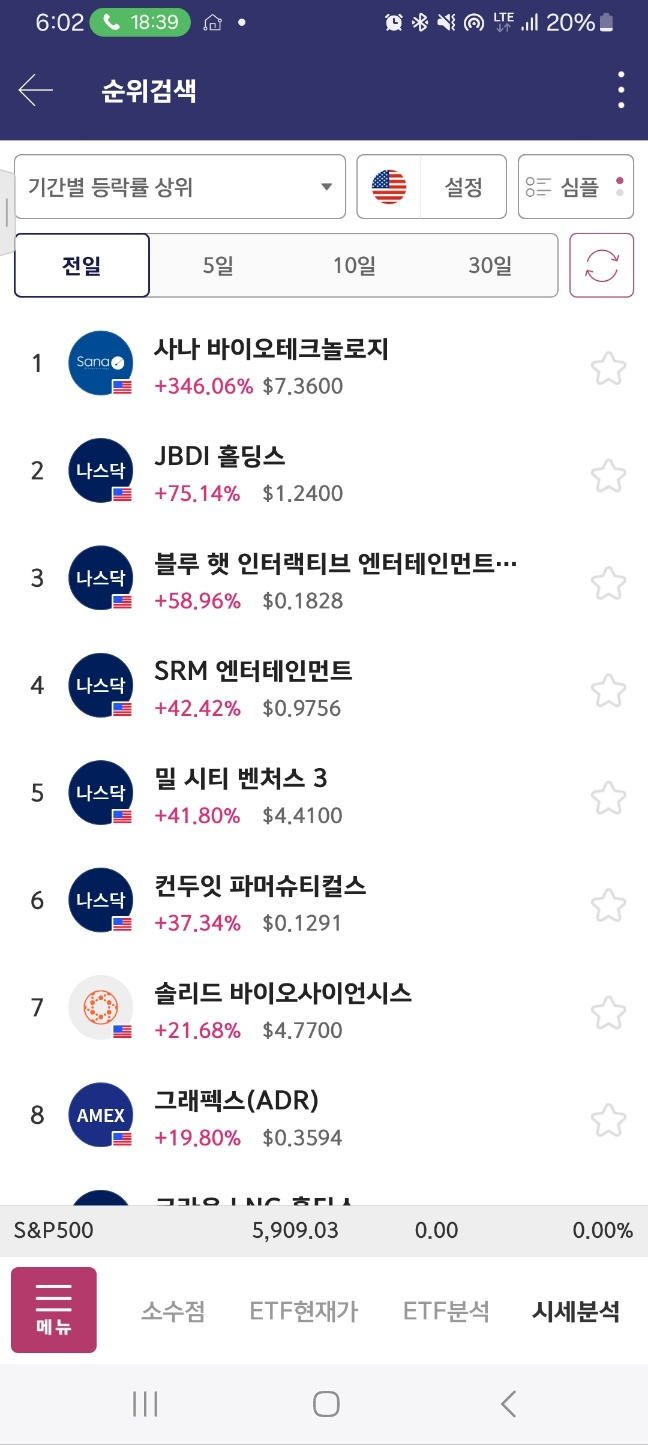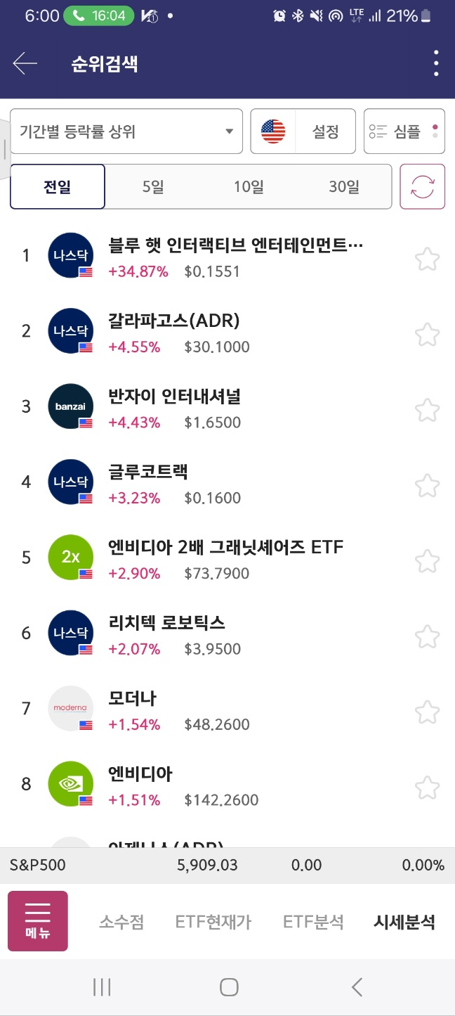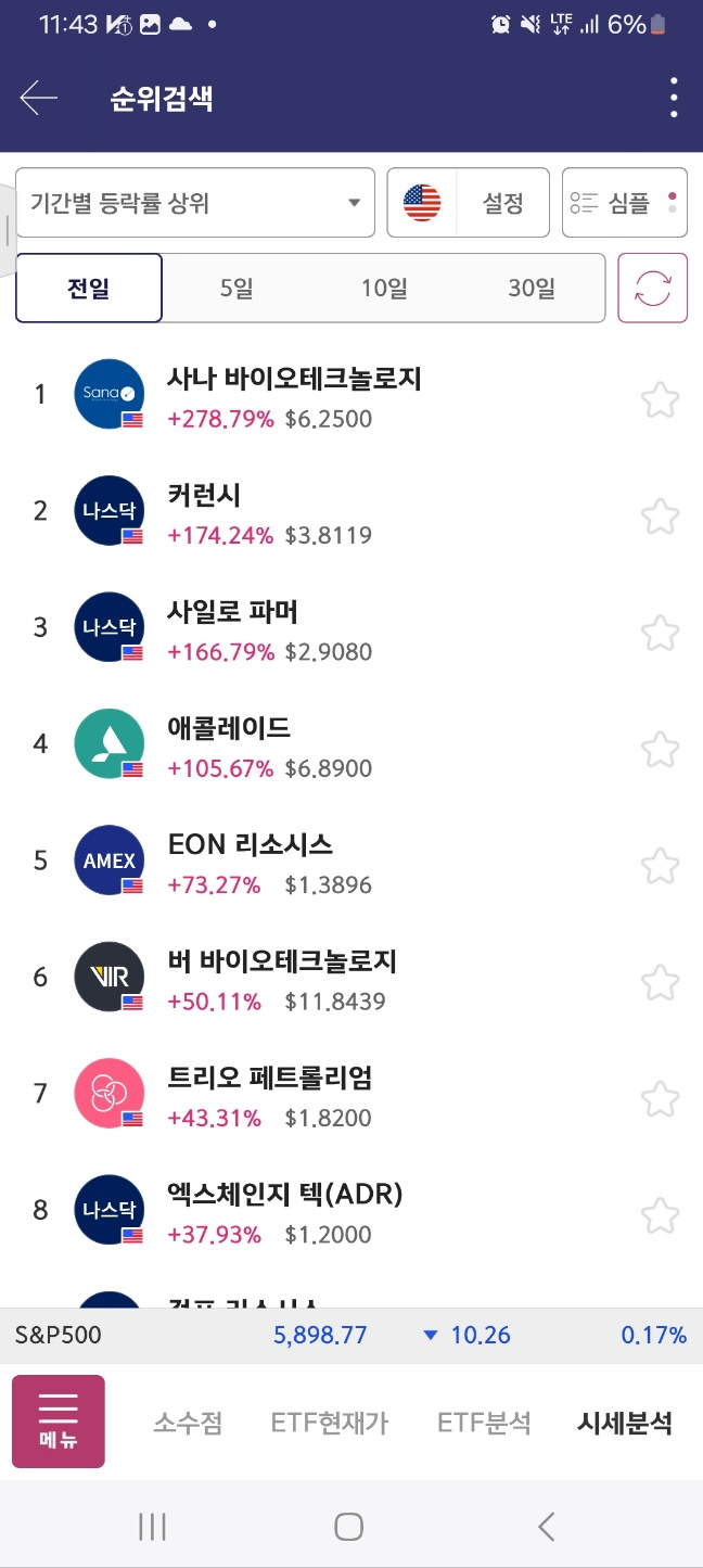 10시 10분정도에 단기적하락종목