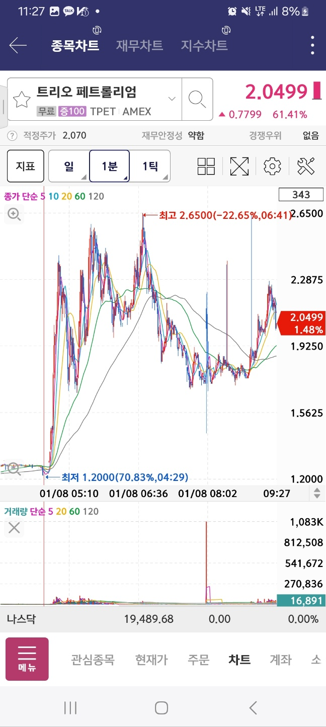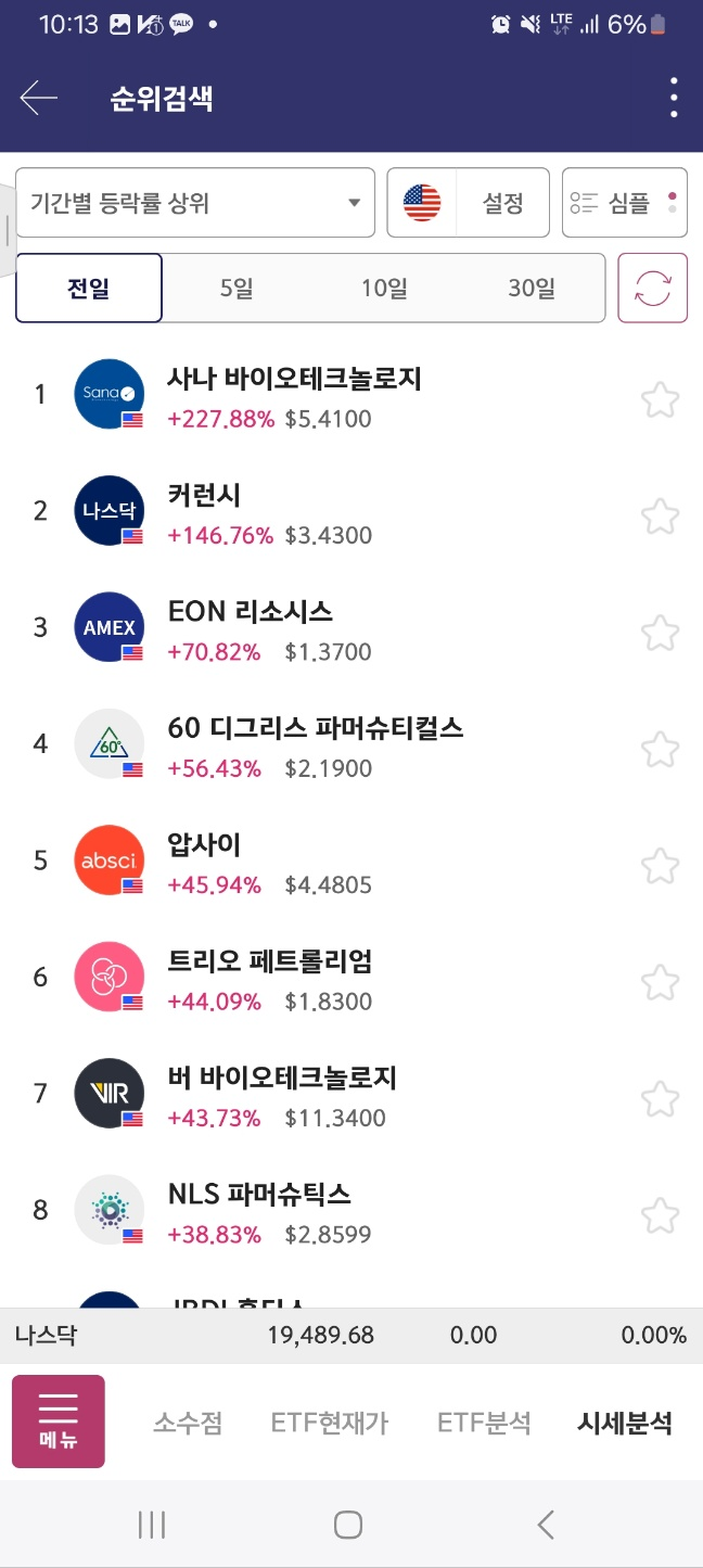 6시 차트 마무리 : 2분 2위 종목은 약간 상승함 나머지는 유지 혹 하락