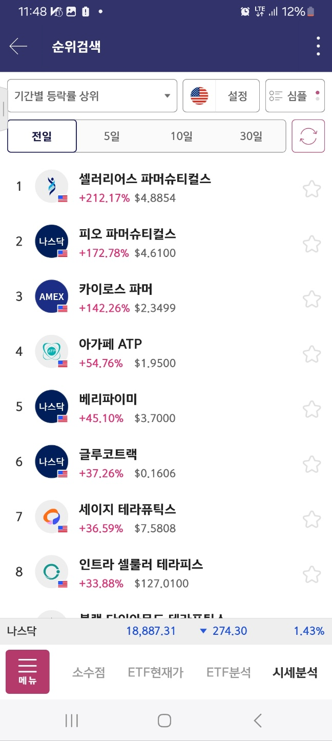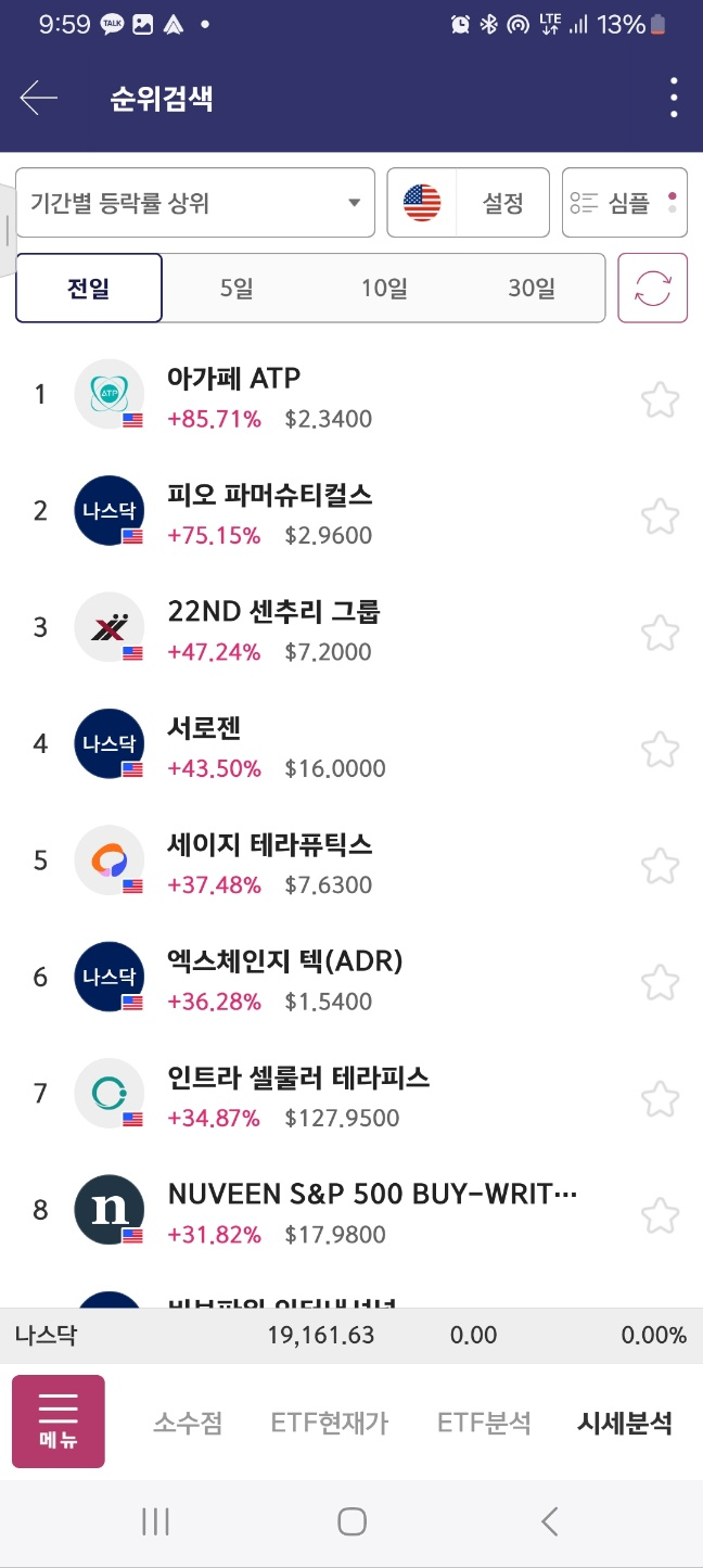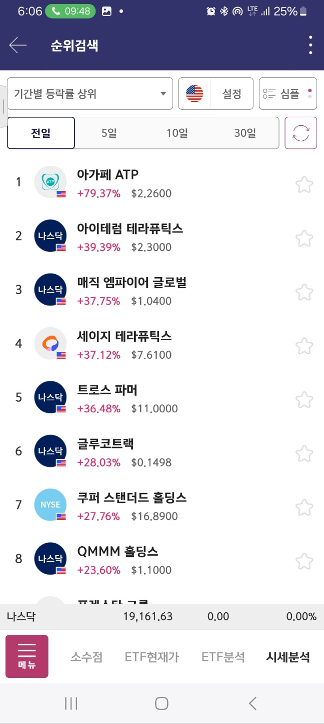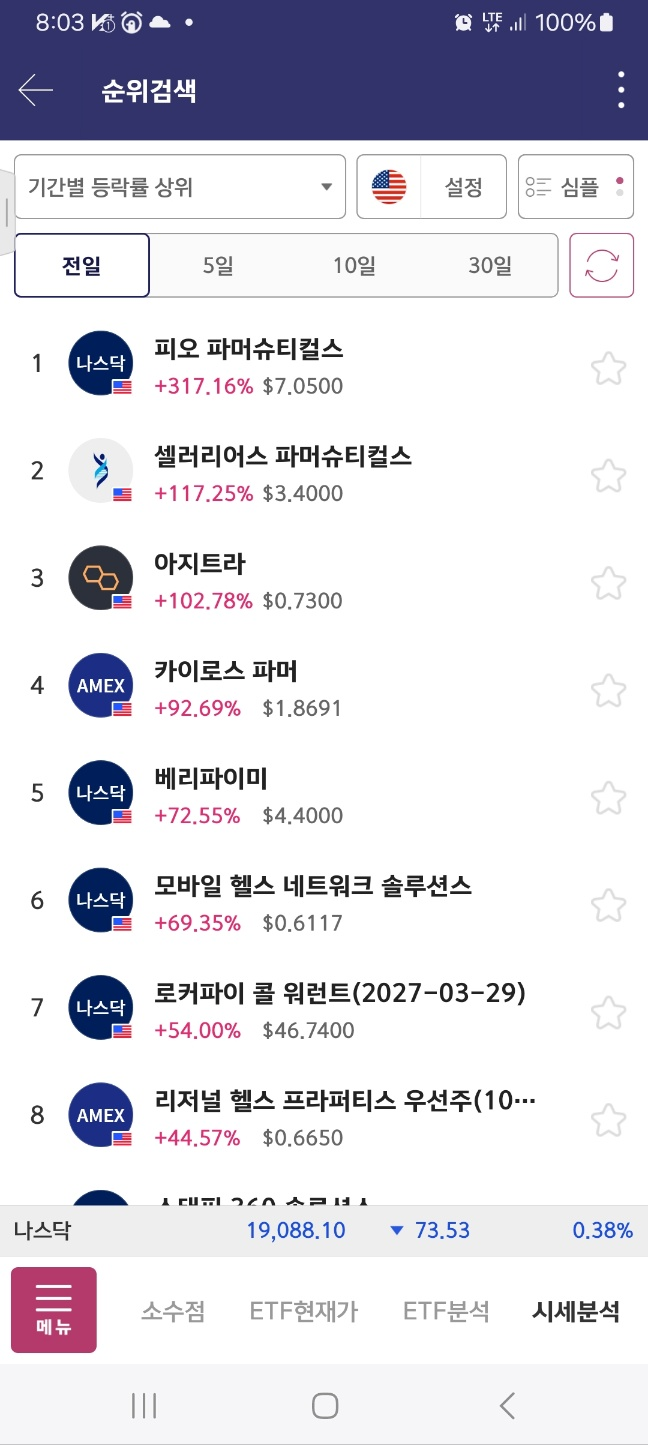 8시, 9시30분 전, 개장후 30분 정도의 순위이다.