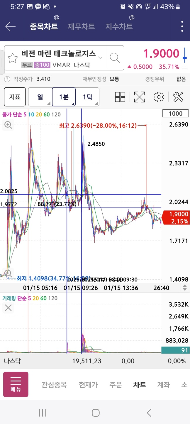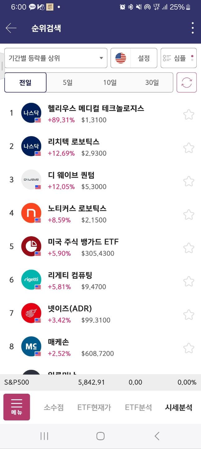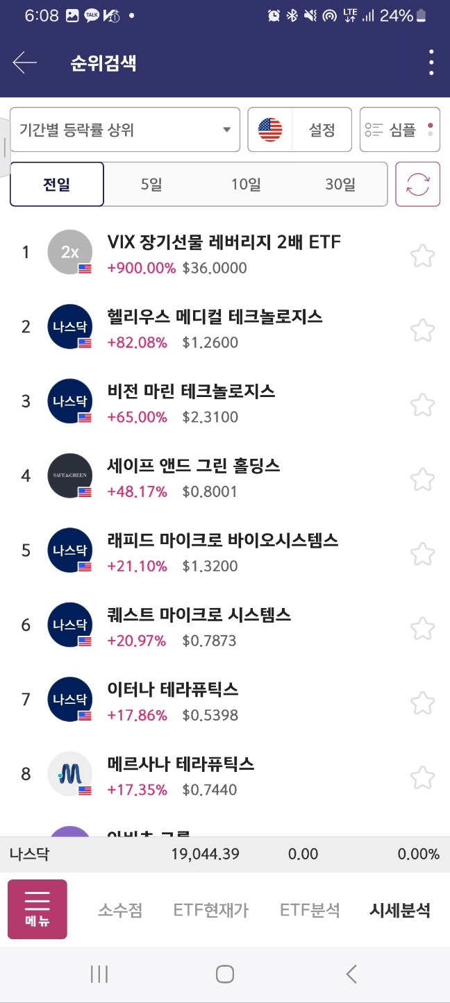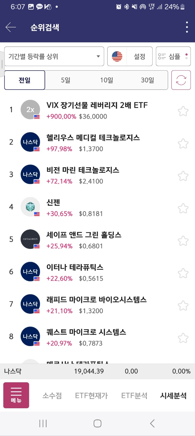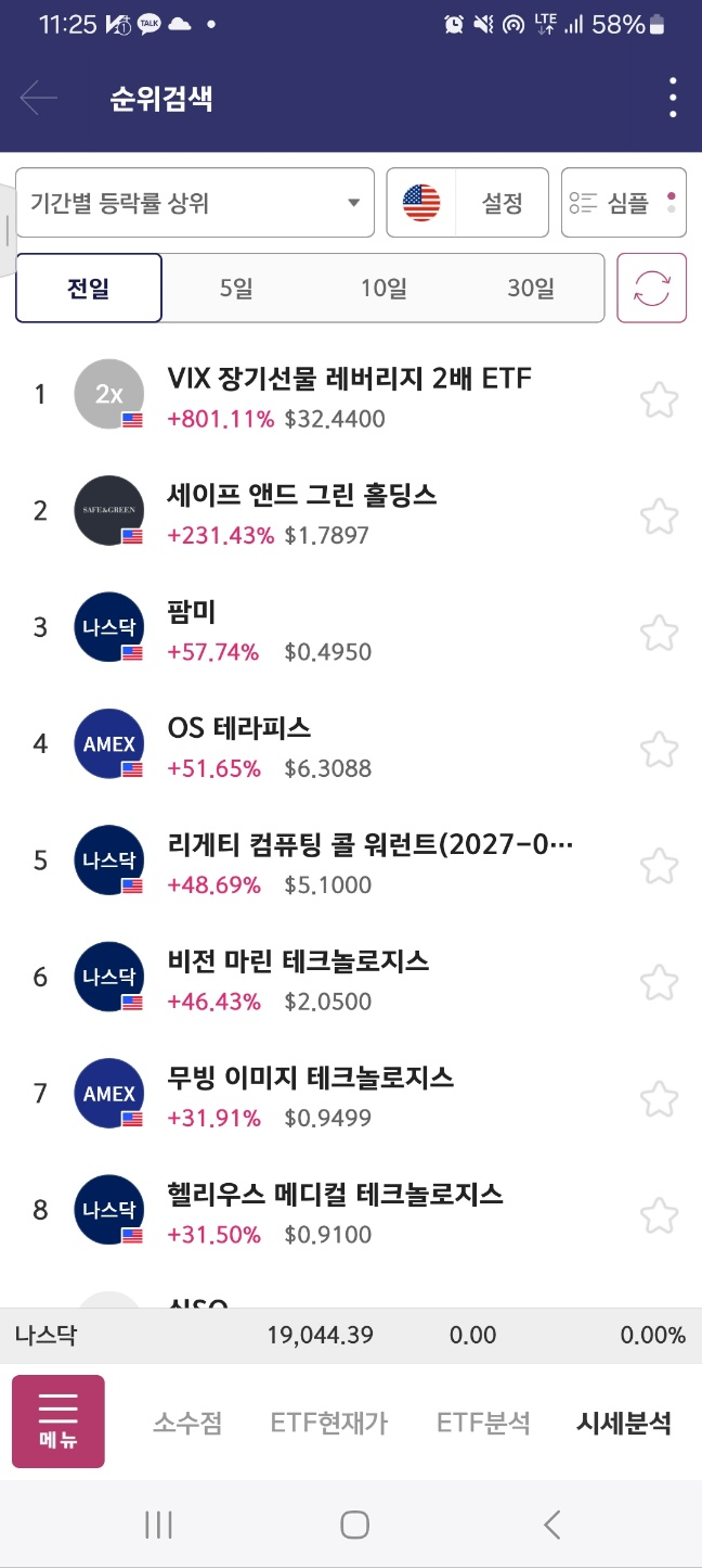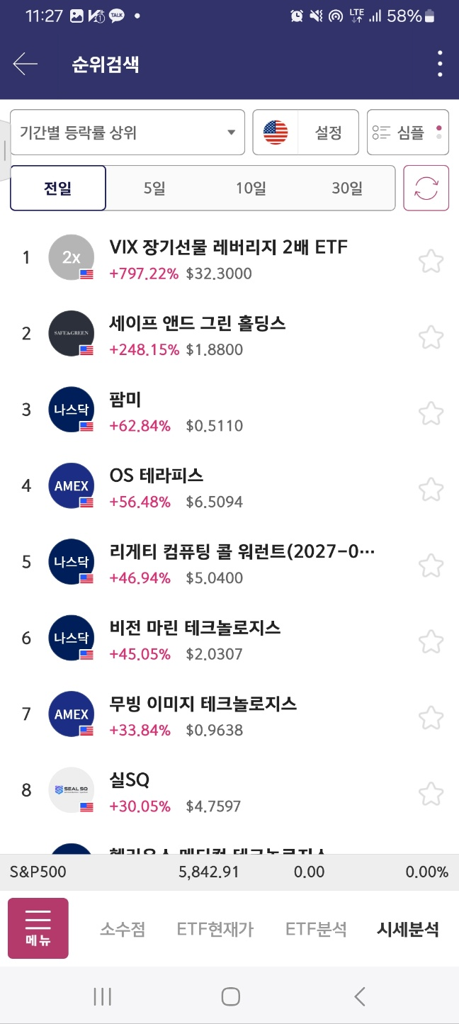 상위권 중에서 비전마린이 초반에 10%이상 올라간다.