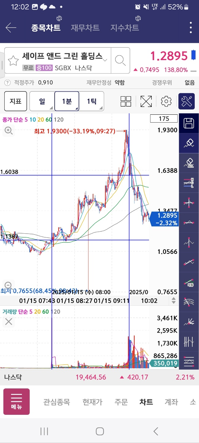 개장 전이다. 세이프의 경우 200%를 넘어있었다. 팜미는 10시에 비해 약간 상승한다.