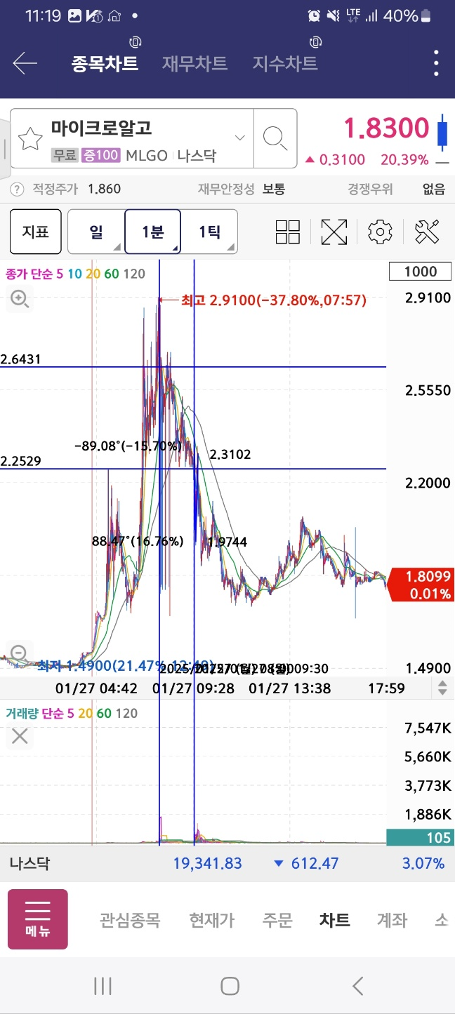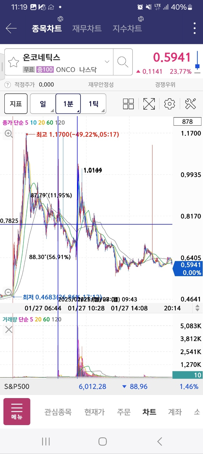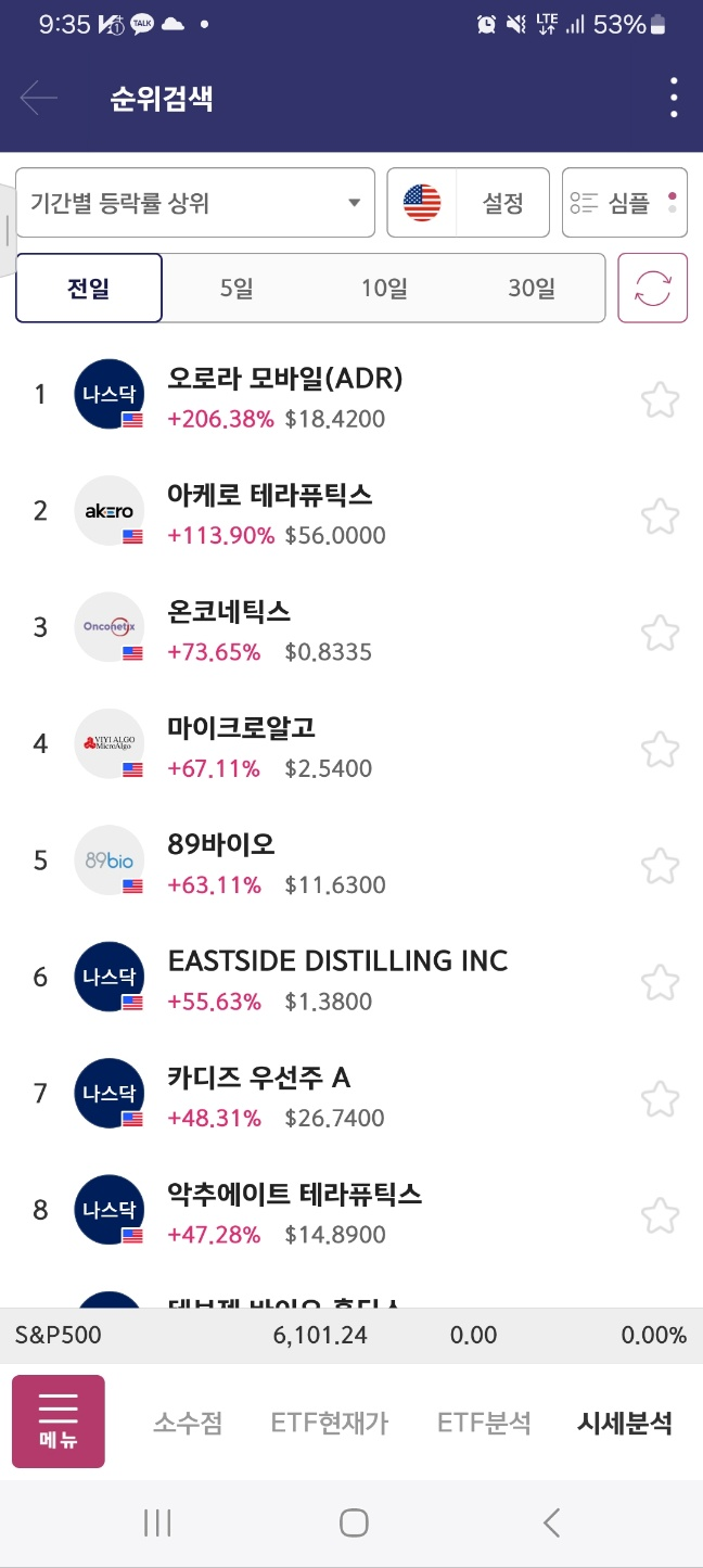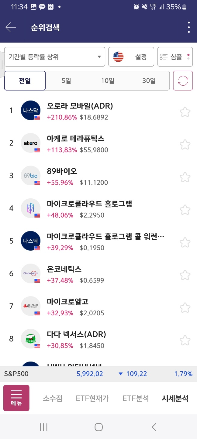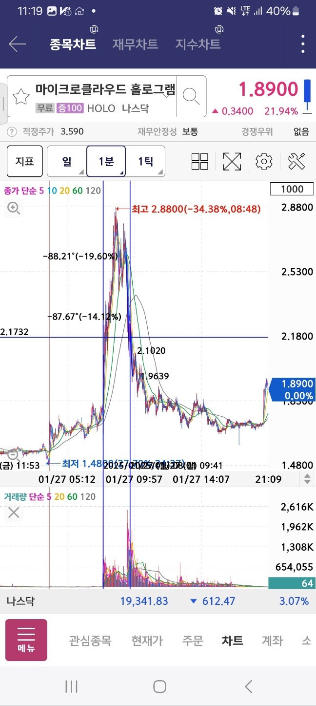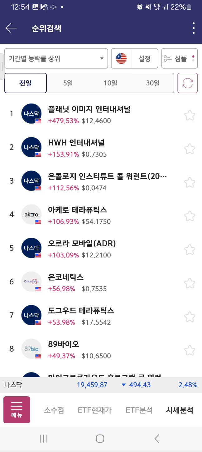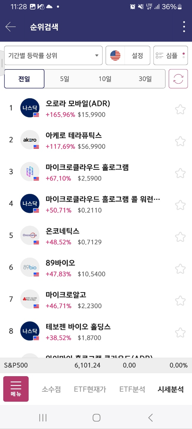 개장 후 올라온 종목. 거래가 중간중간 멈추면서 상승함. 17달러까지 상승후 급하락.
