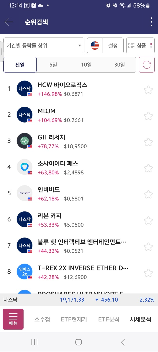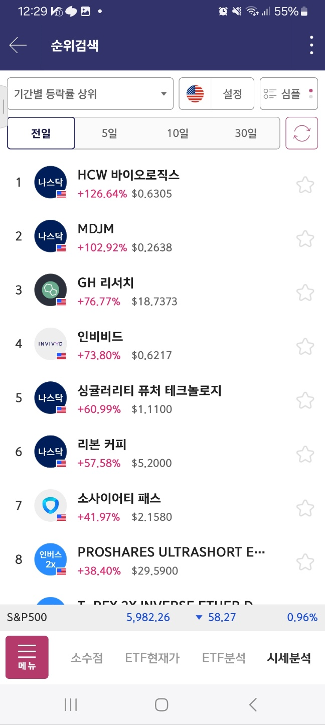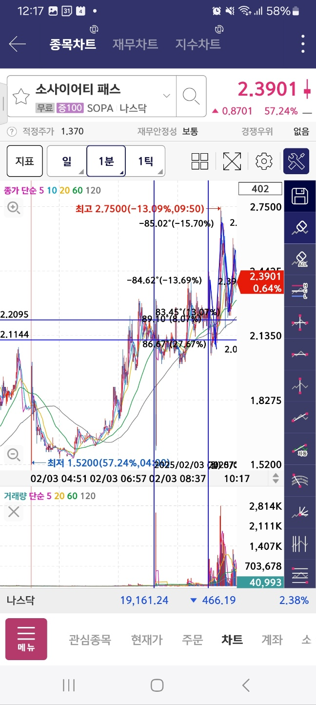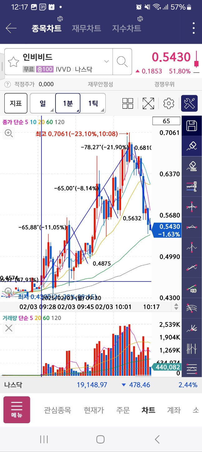 개장 초반 5분간 지속 상승. 약 30프로 상승함. 이후 하락세로 36프로 하락함.