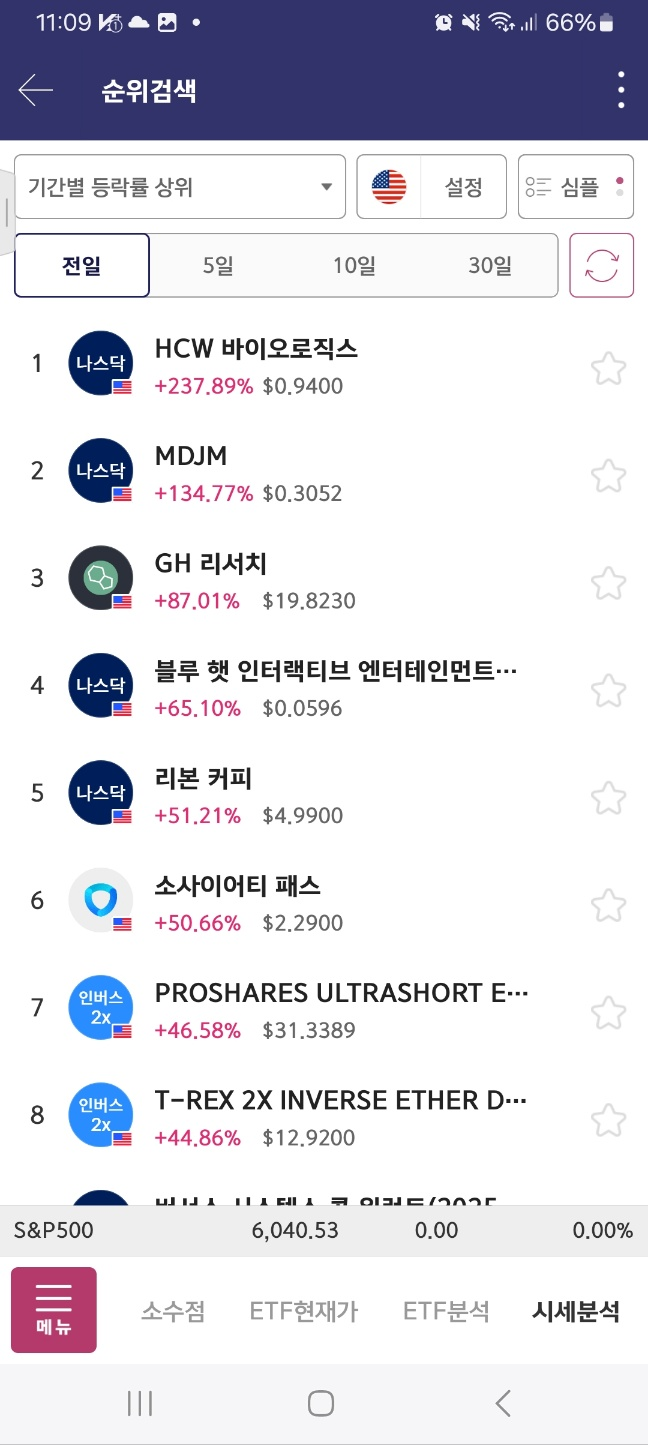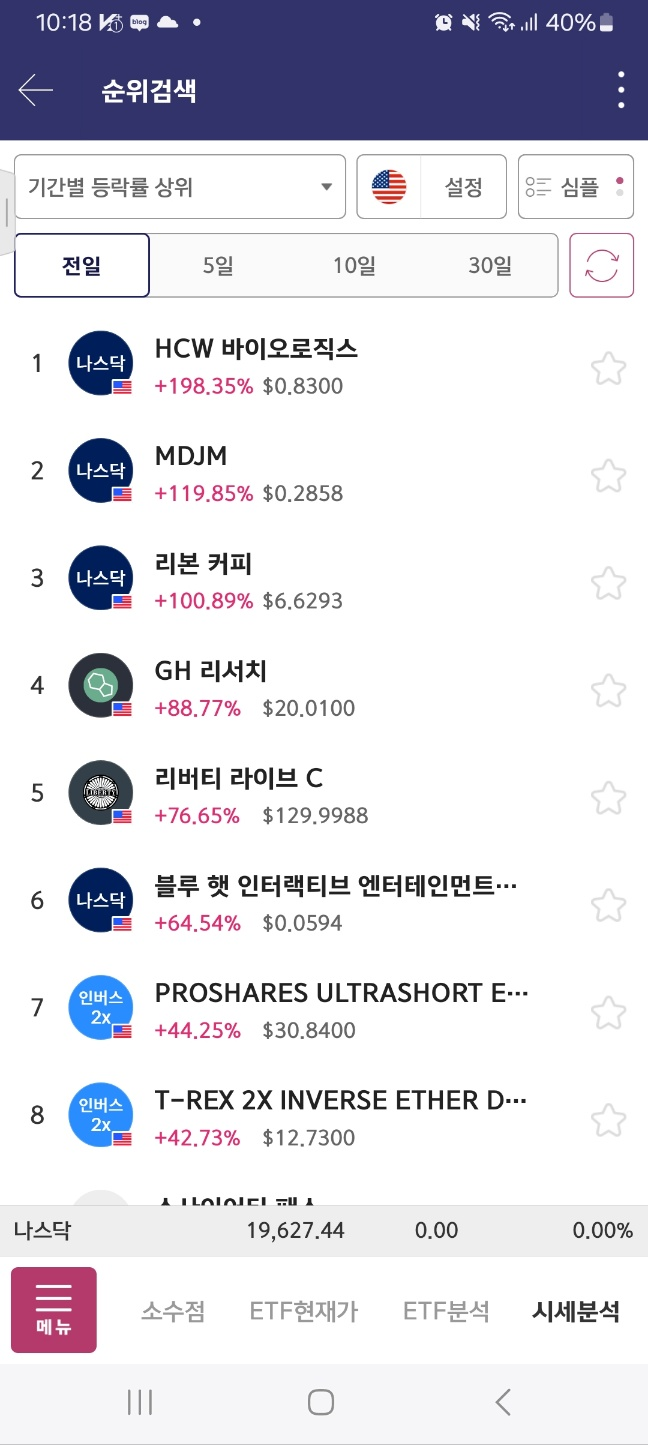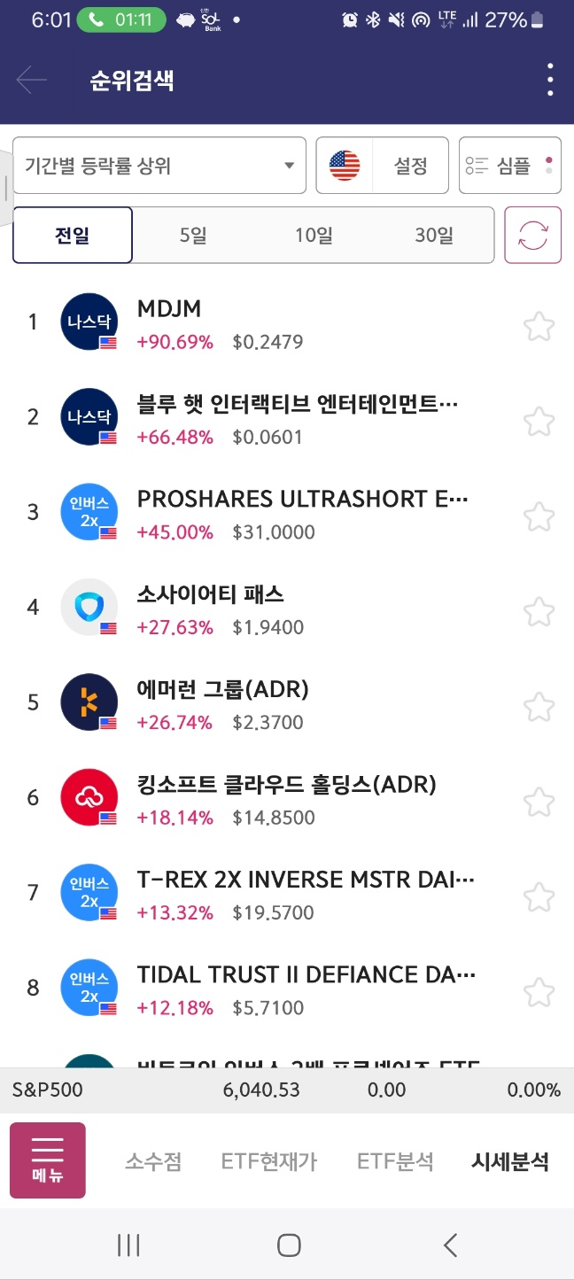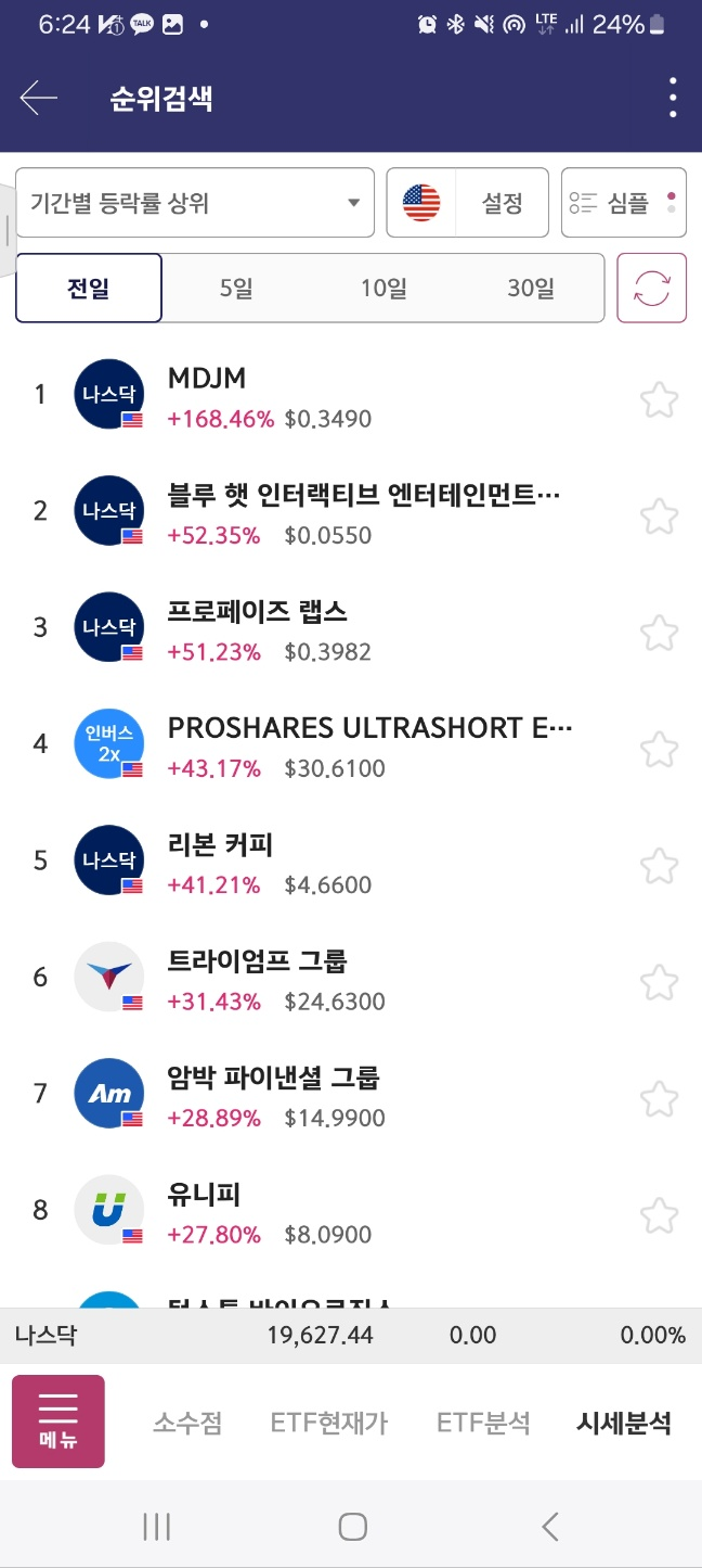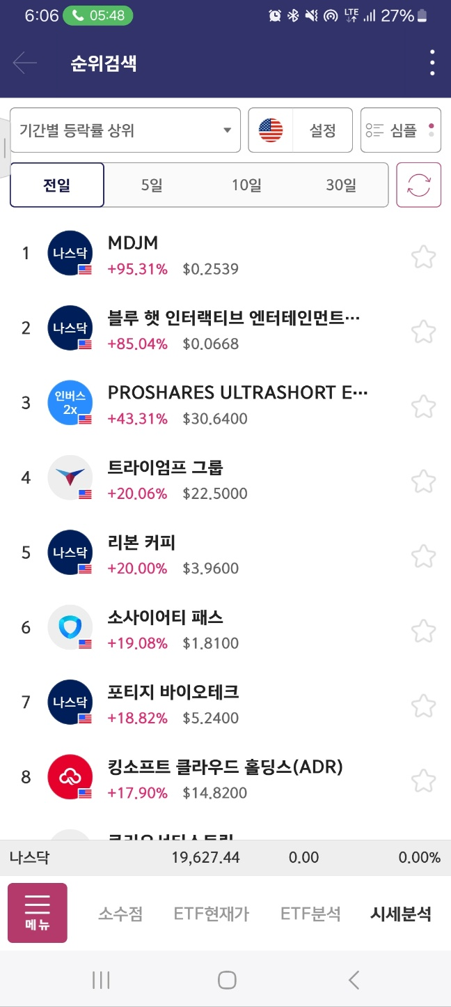순위표. 월요일 첫 종목. mdjm
