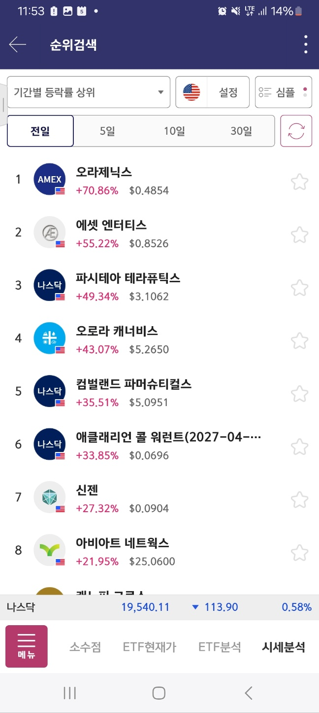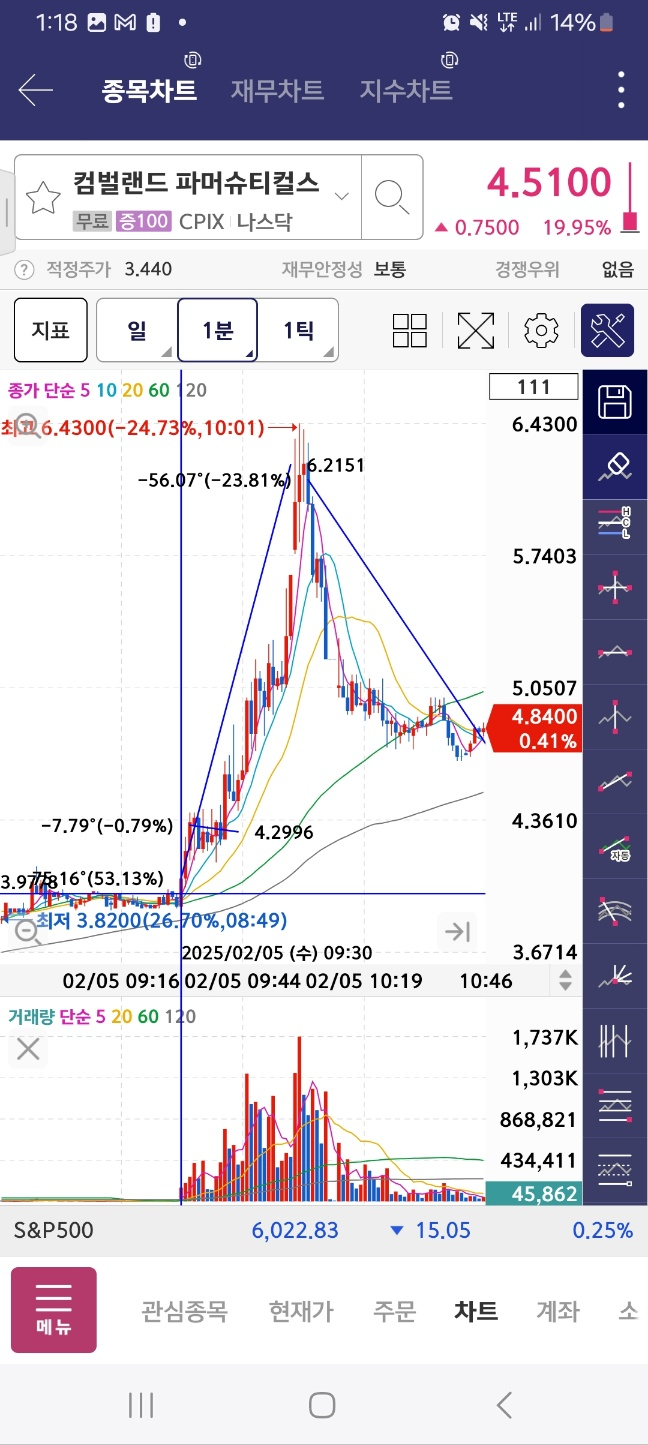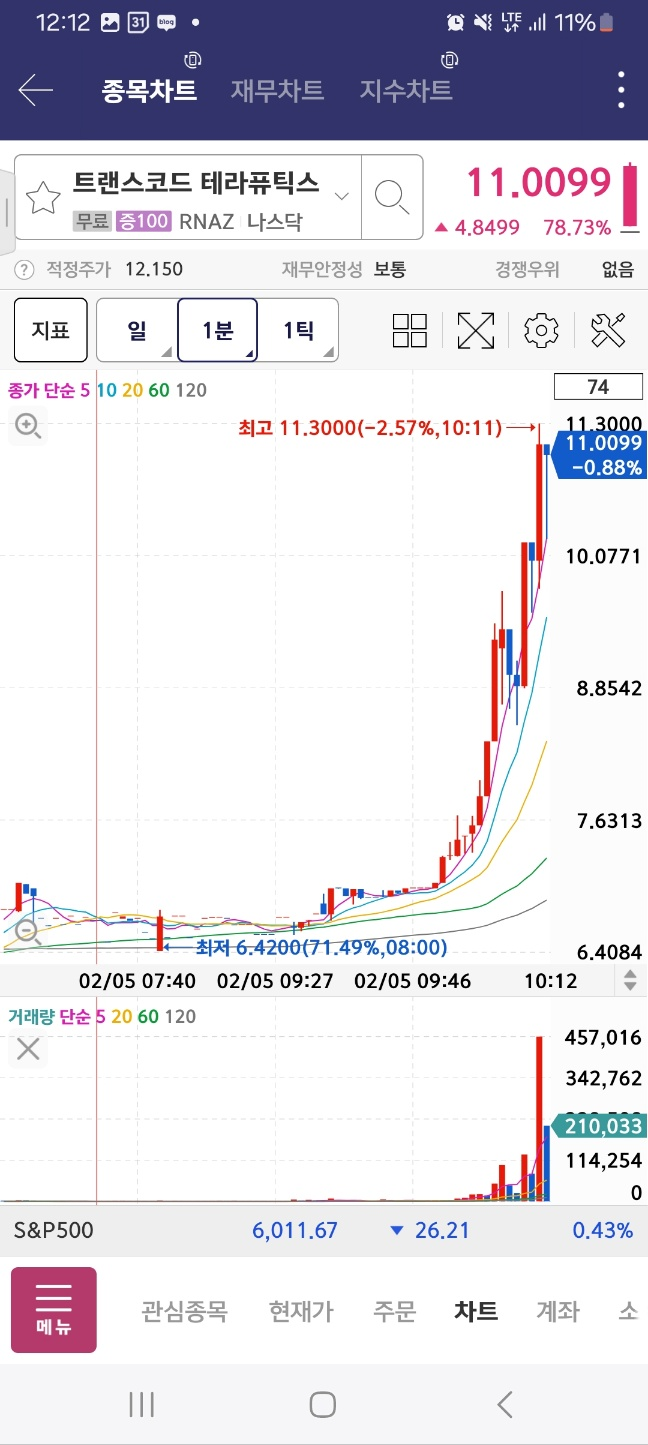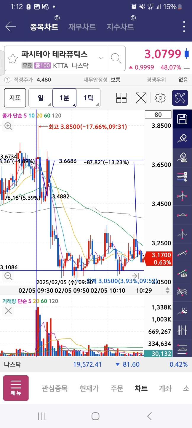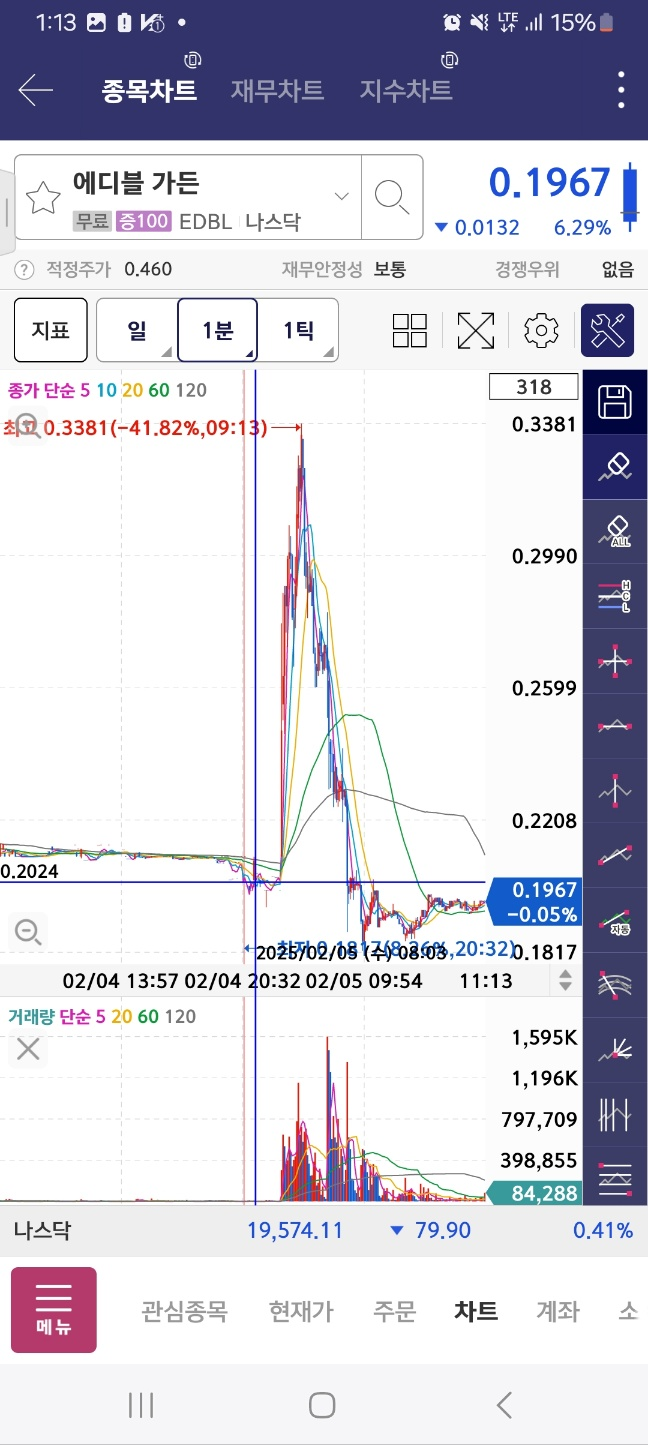 개장초반상승 / 개장 후 5분간 단기상승 후 약 13프로 하락함.