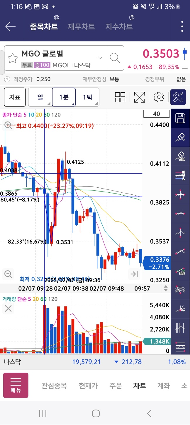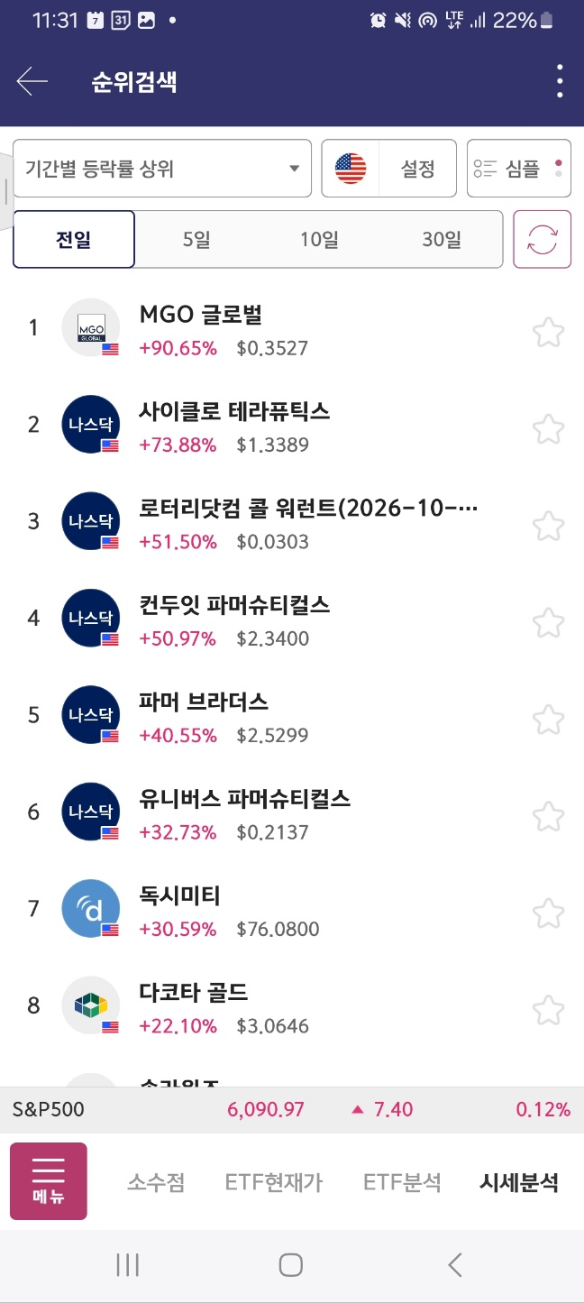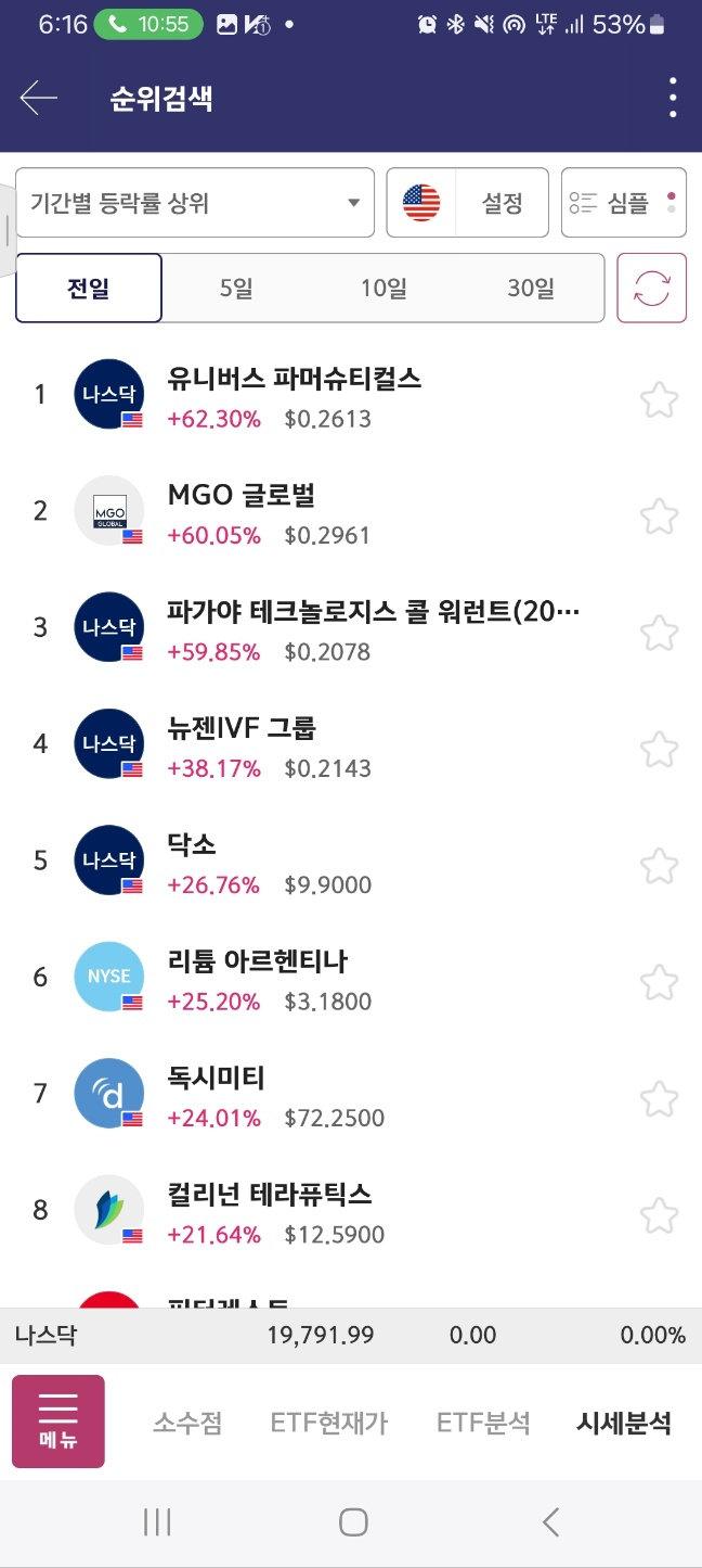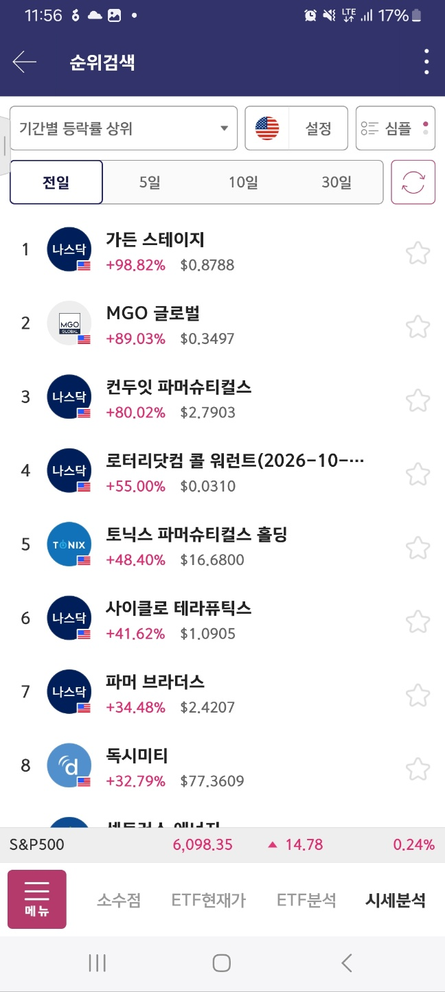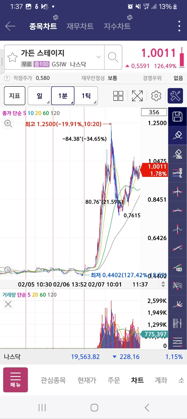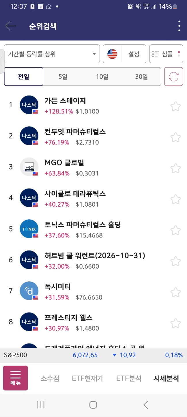 금일 중간에 올라온 종목은 가든스테이지이다. 급격한 가격변동이 장 초반 30분동안 이루어지지 않았다. 개장 직후 10분 내에 이러나는 하락 후 반등종목 2개. 최근보면 개장 직후 급등하는 종목보다는 하락 후 상승하는 양상이다. 6프로 내에서 방어하닥 나가자.