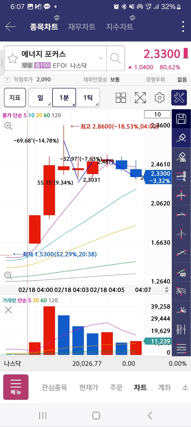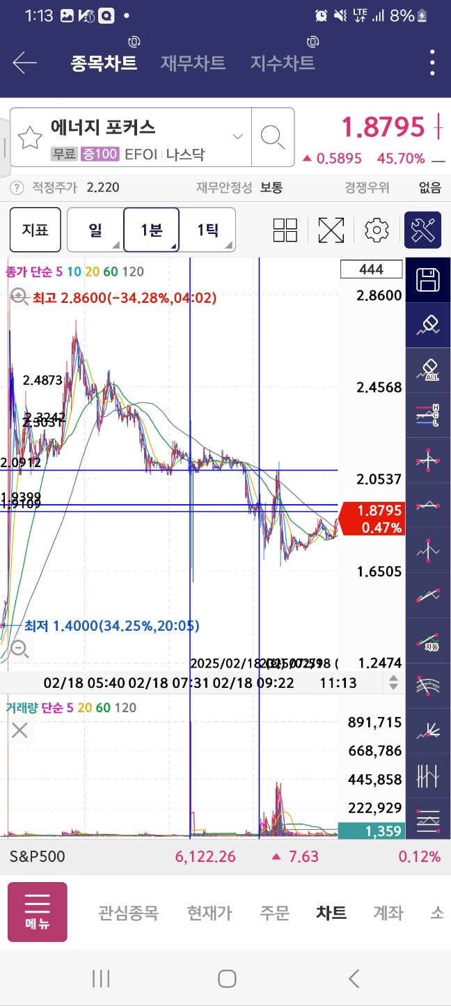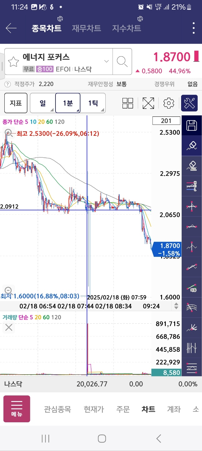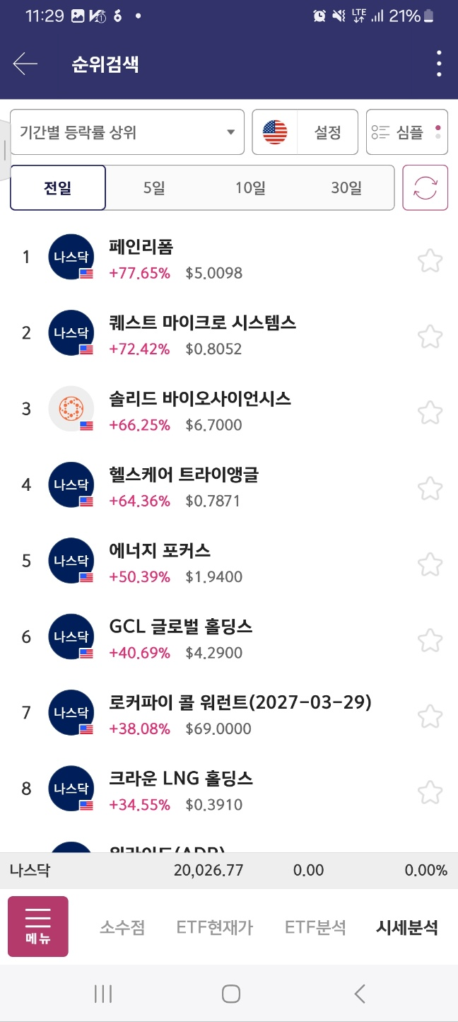 개장 직전 올라가는 종목. 개장 시점 8프로 하락한다. 그 이후 5분동안 35프로 상승. 이후에도 상승을 지속한다. 중간에 한번 멈춘다.