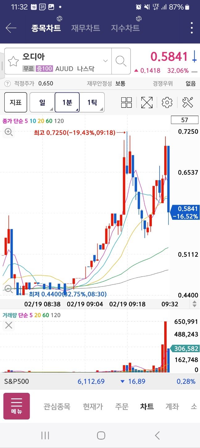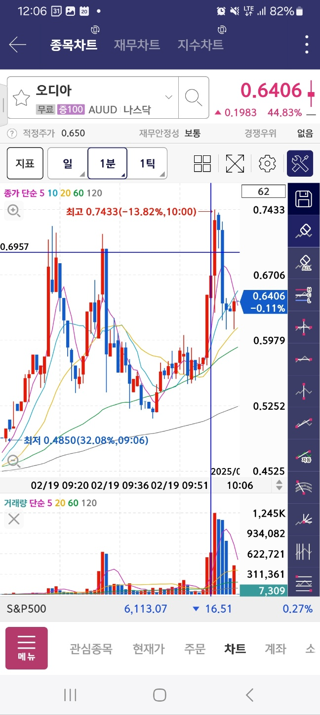개장 직후 2분 뒤에 한번 멈춤. 이후 6분간 상승. 결과적으로 50프로 가까이 상승함