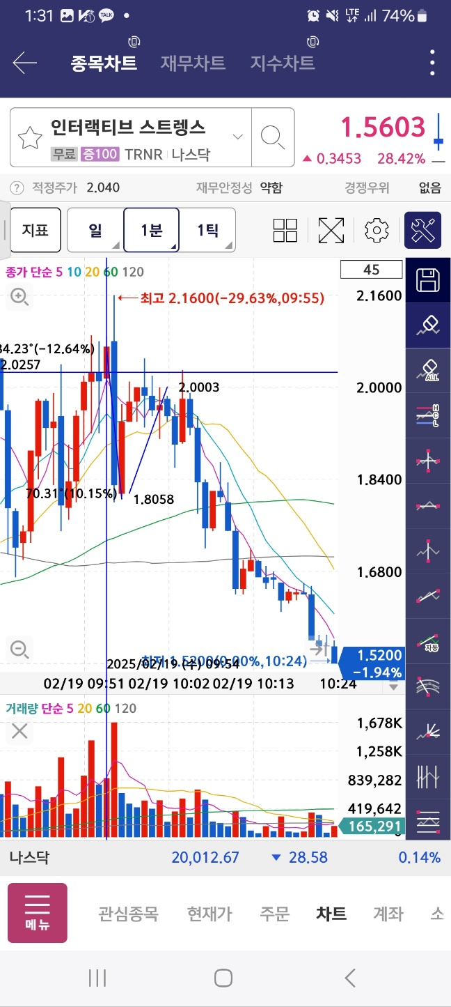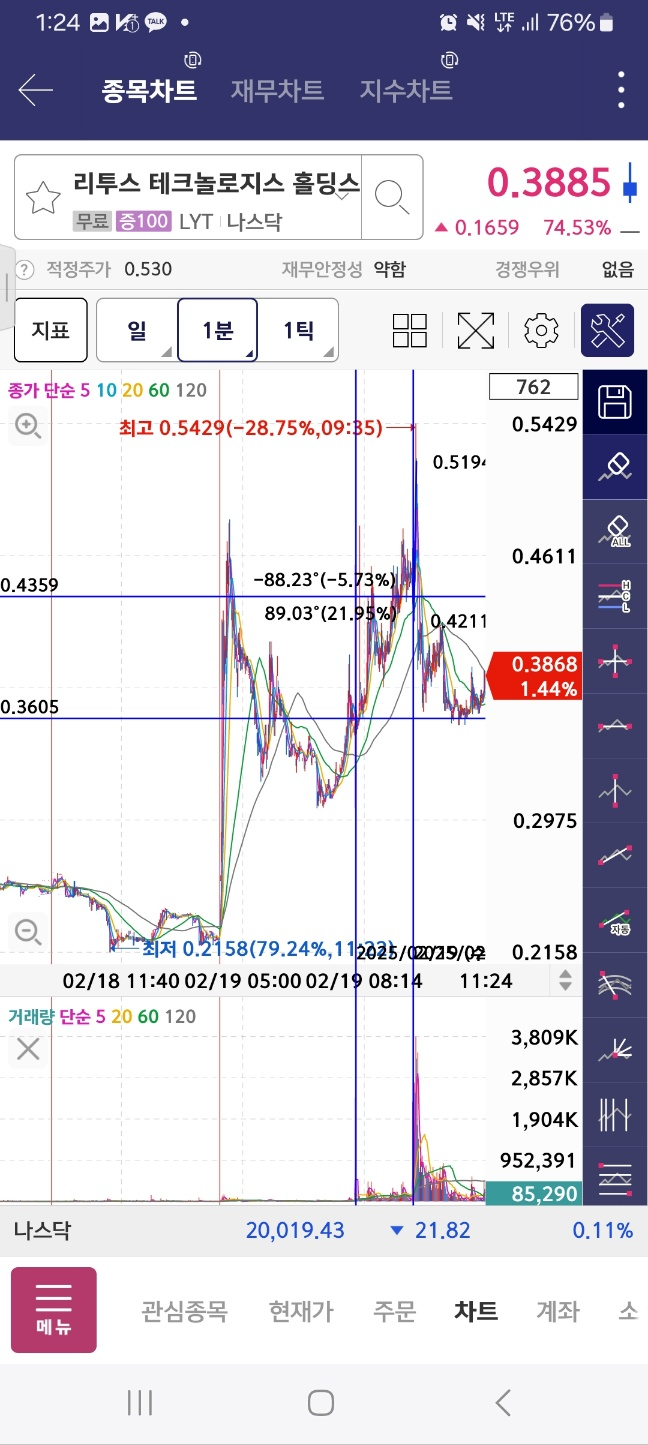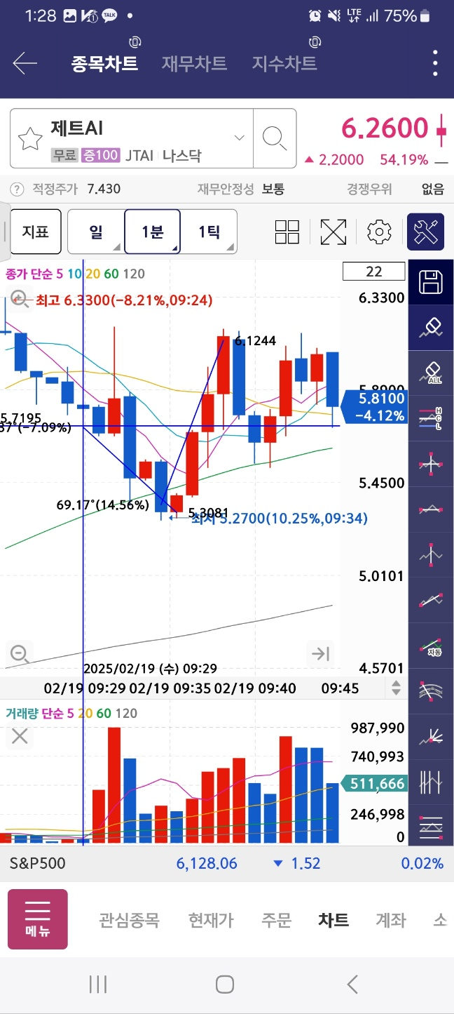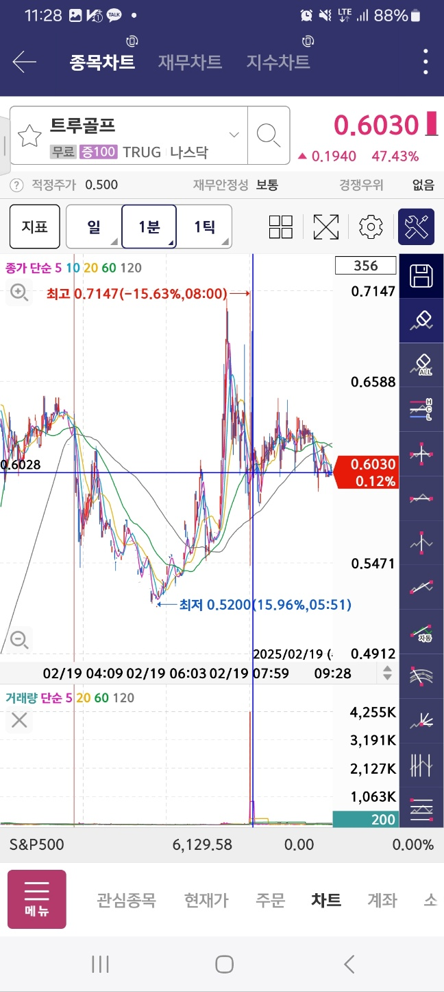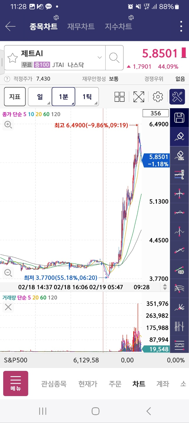 개장 시점으로부터 5분간 하락. 7프로. 이후 14프로 5분간 상승