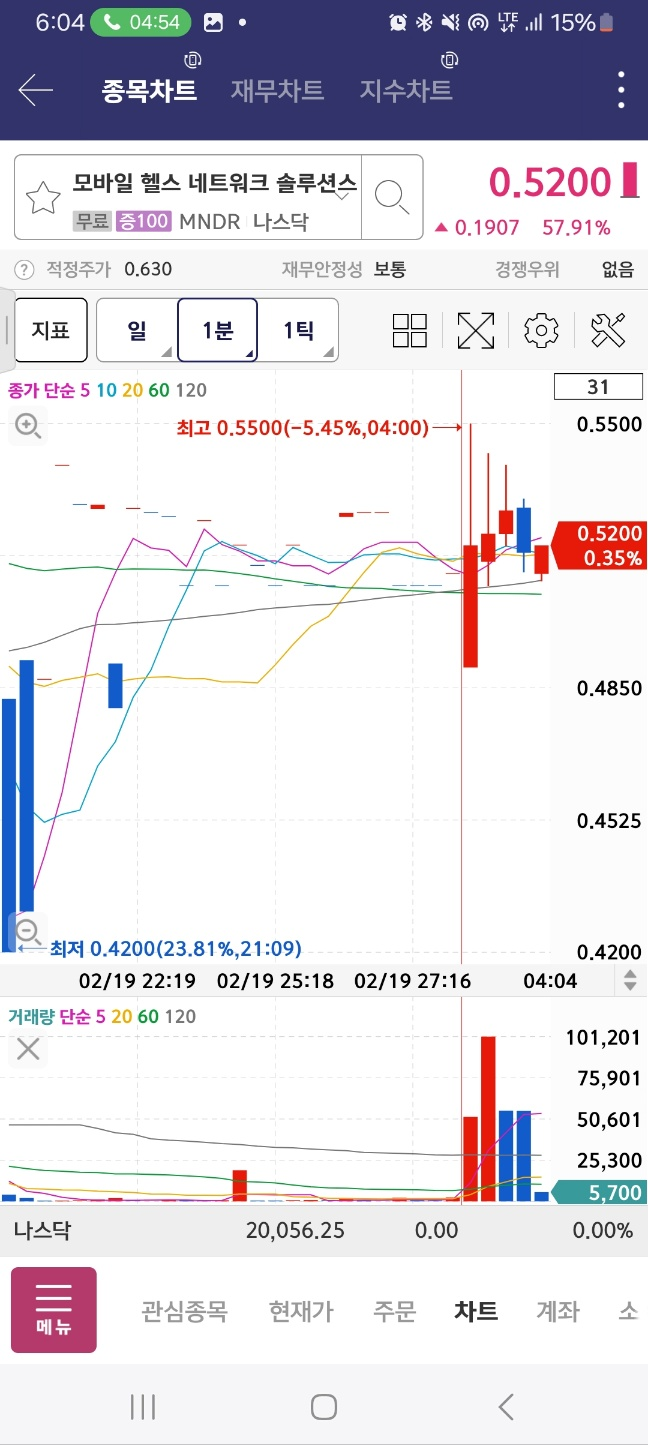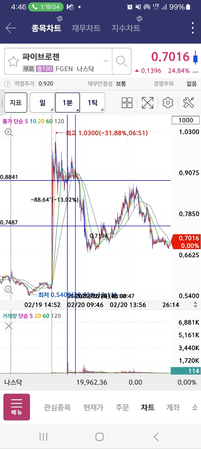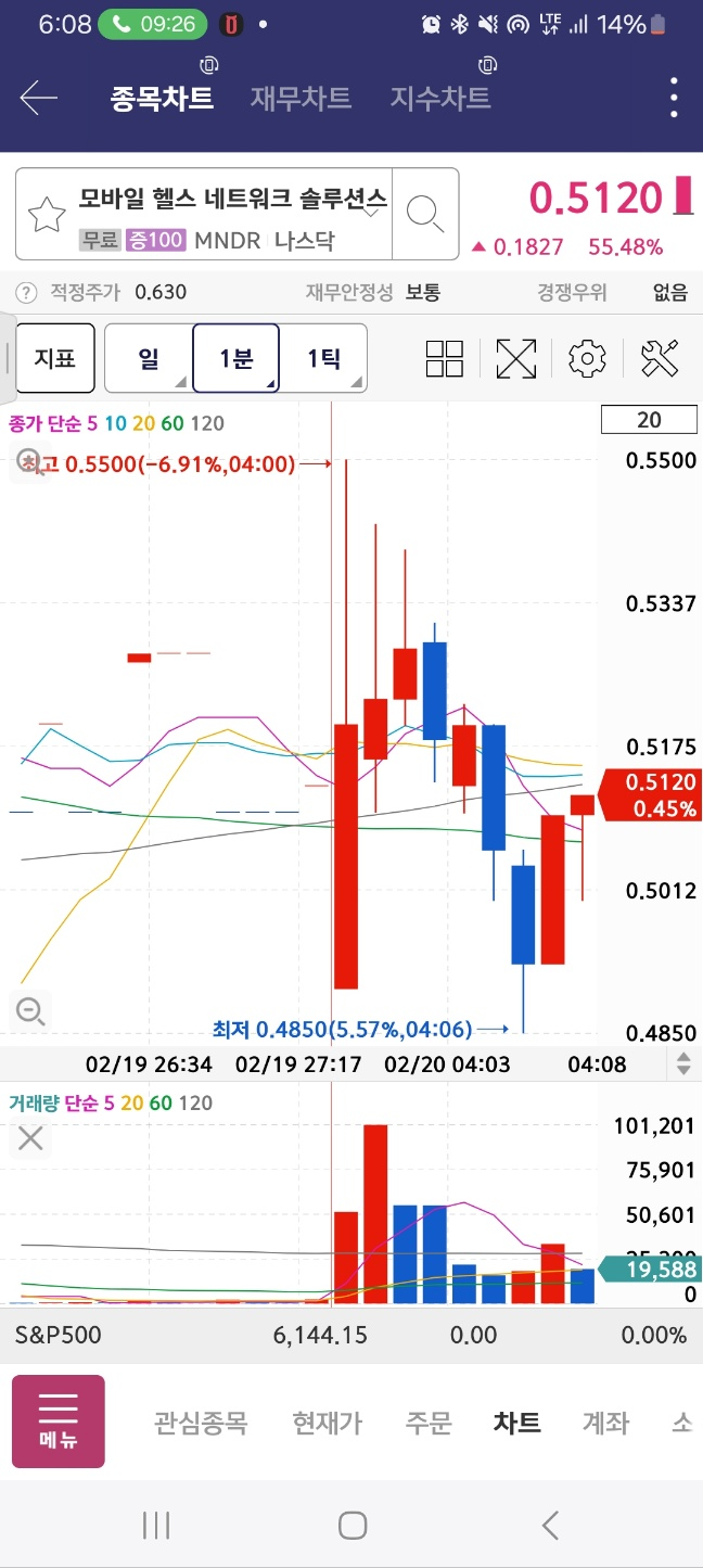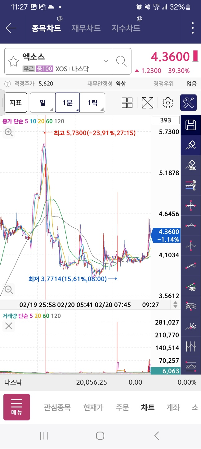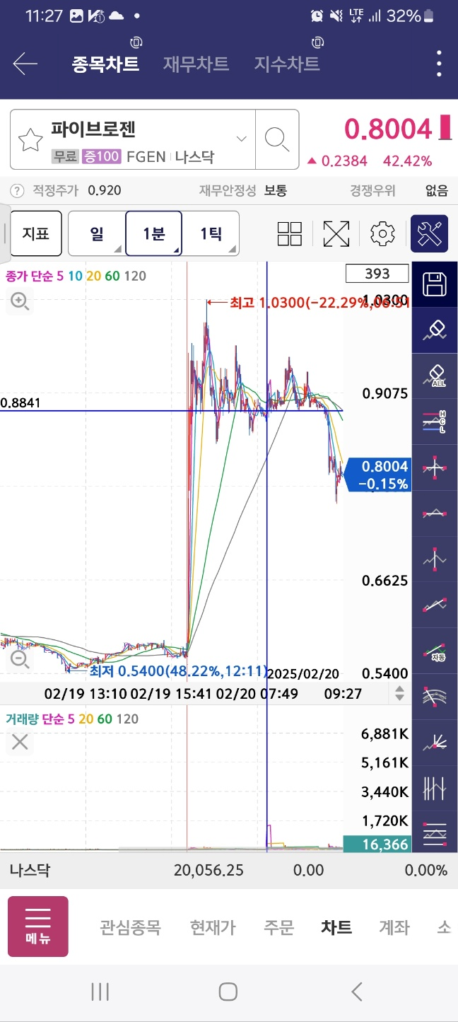 개장 후 상승. 12프로 하락 후 47프로 상승. 중간에 멈춘다.