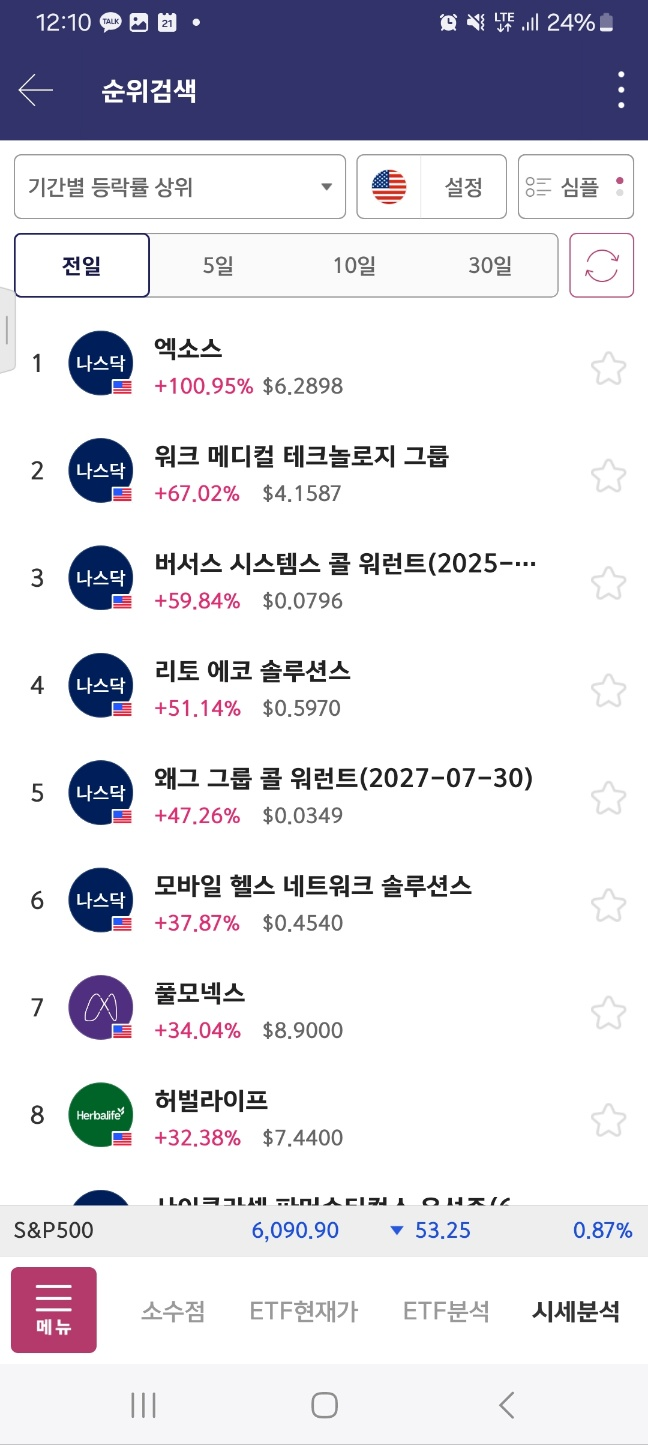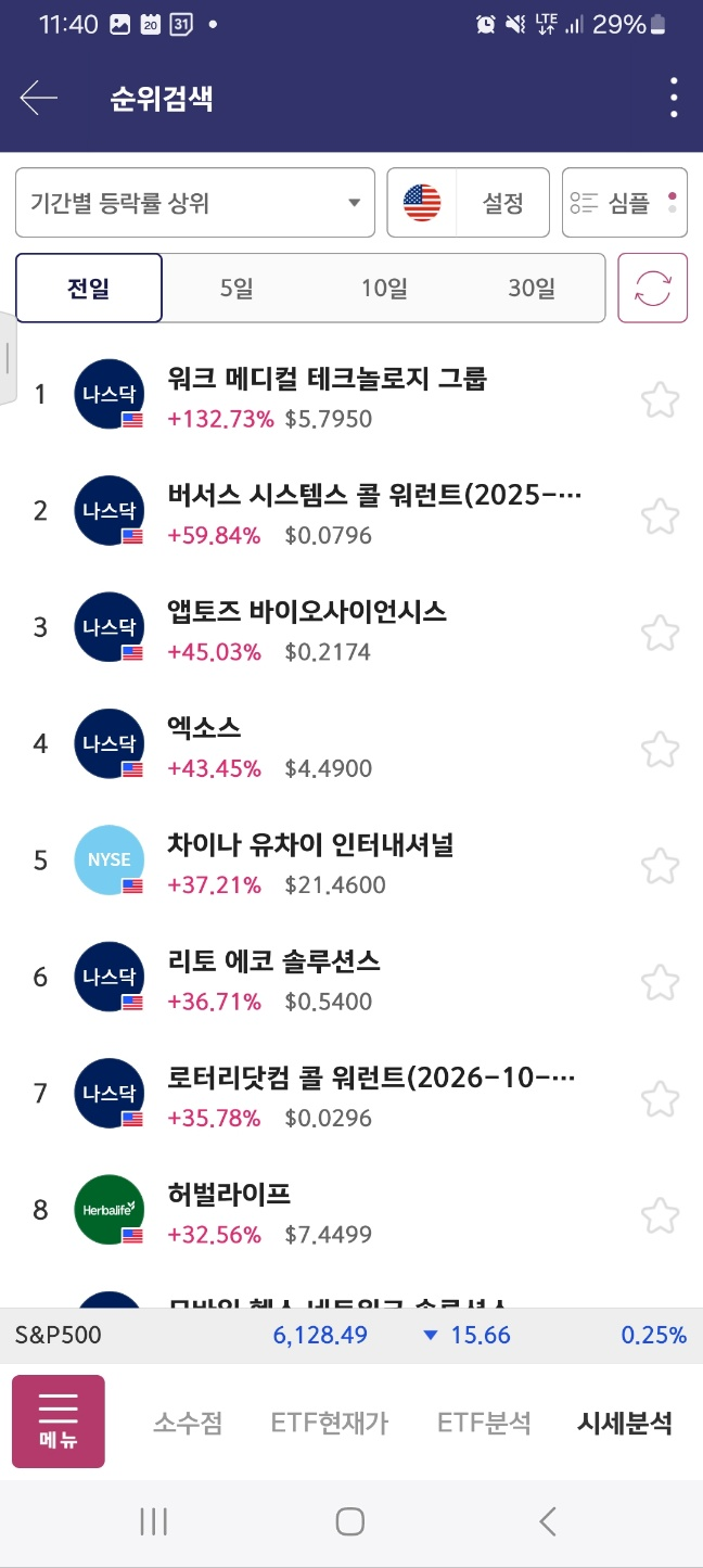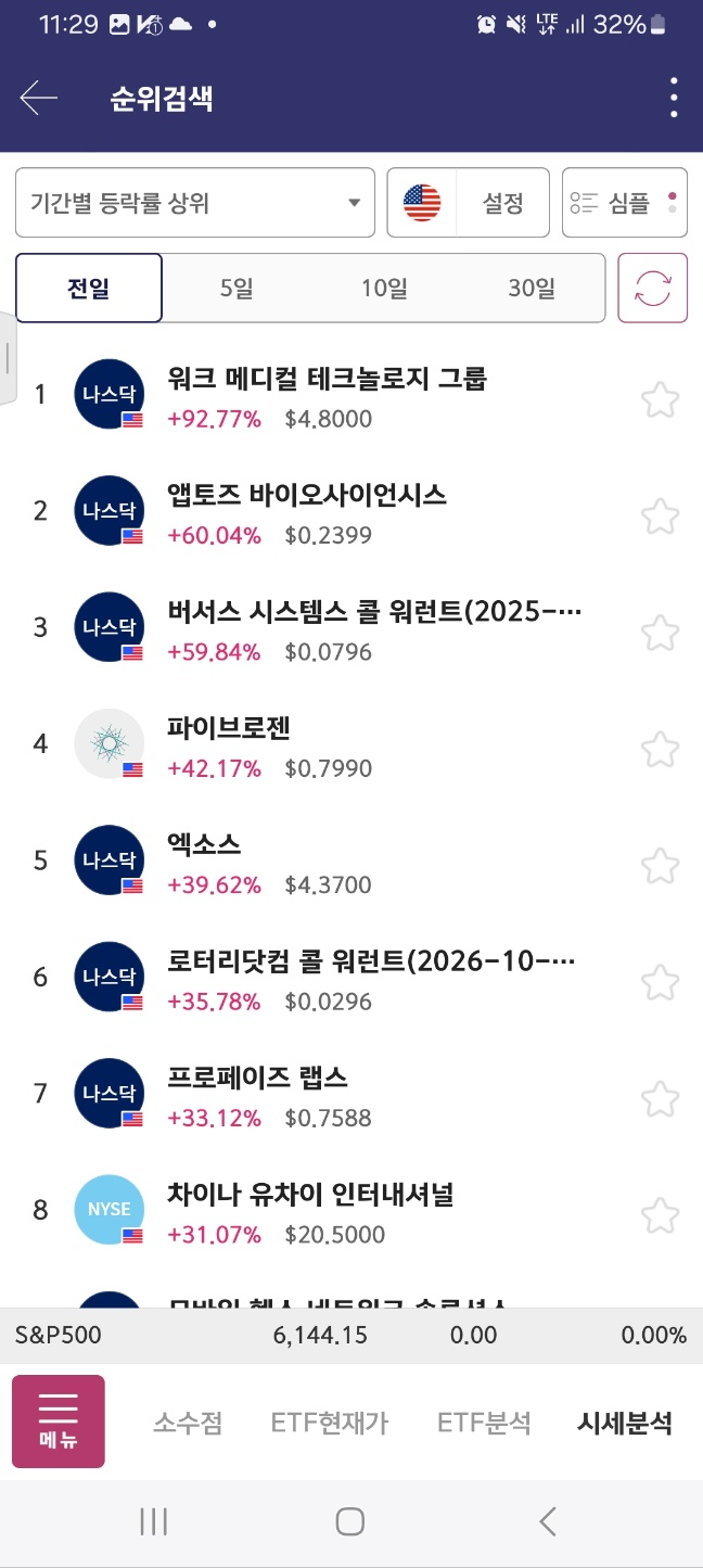 [11시] 92프로에서 시작한 1이 132프로 상승. 아래 있던 엑소스 올라온다.