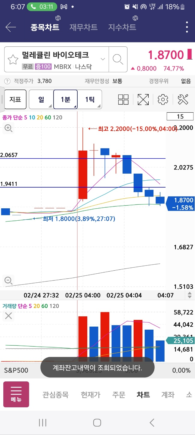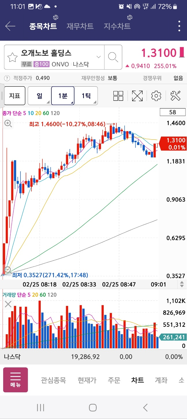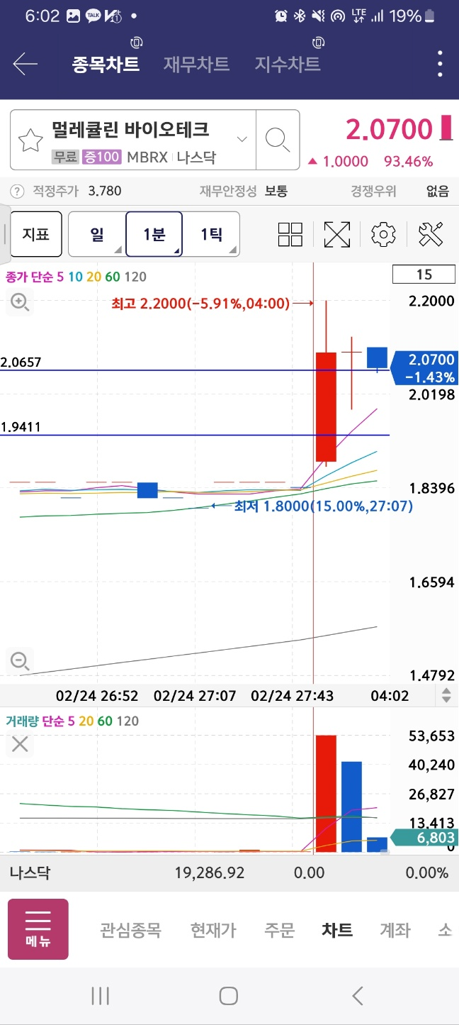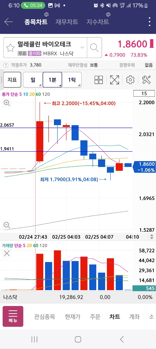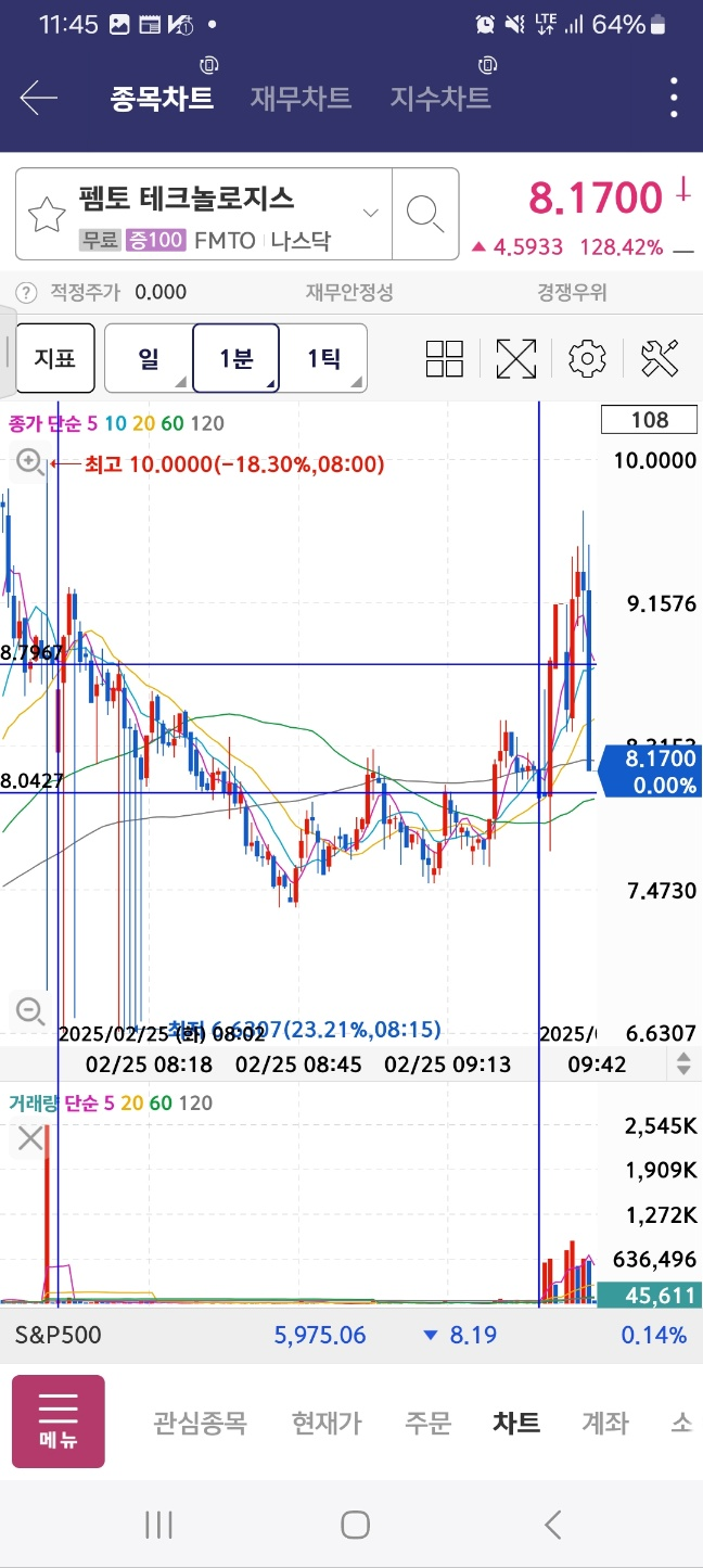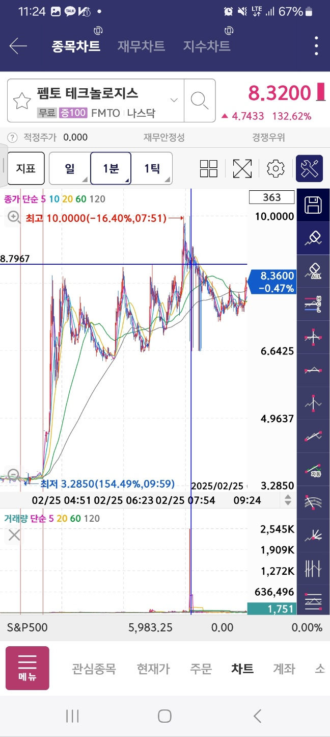 펨토는 급락한다. 아까 봤던 메니얼 파마는 시작지점을 개장 후 터치한다.