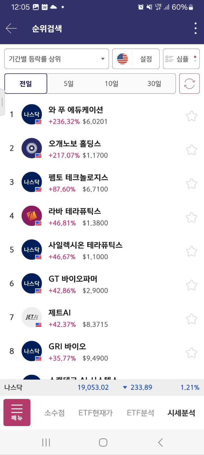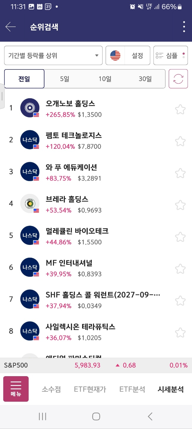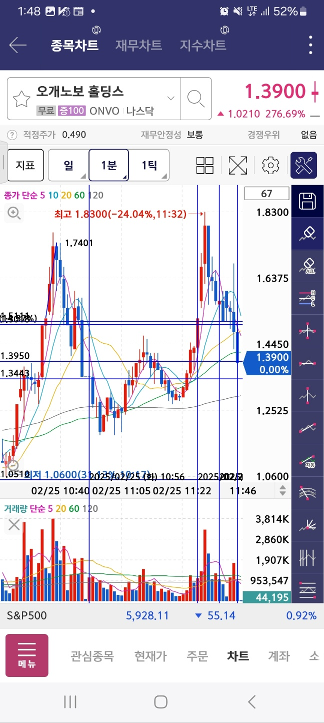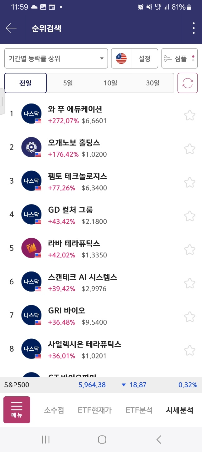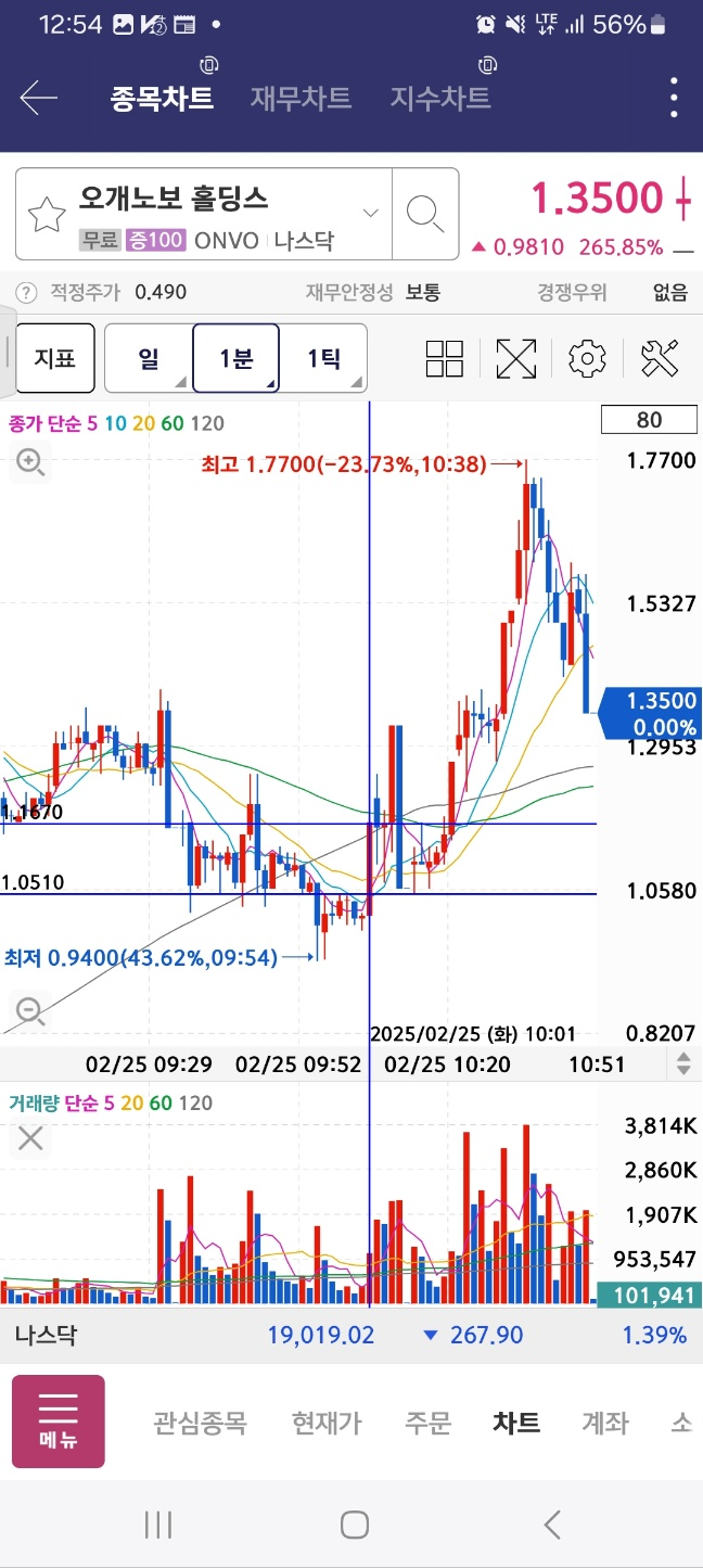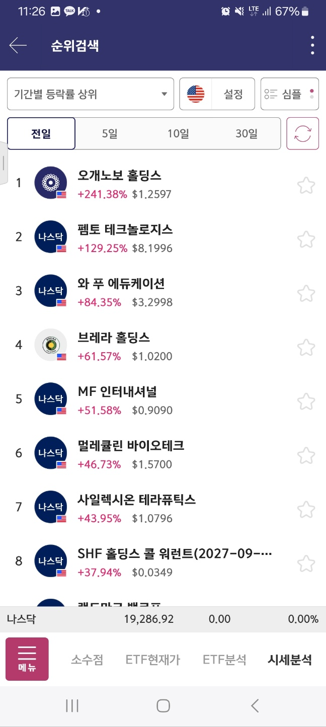 펨토는 급락한다. 아까 봤던 메니얼 파마는 시작지점을 개장 후 터치한다.