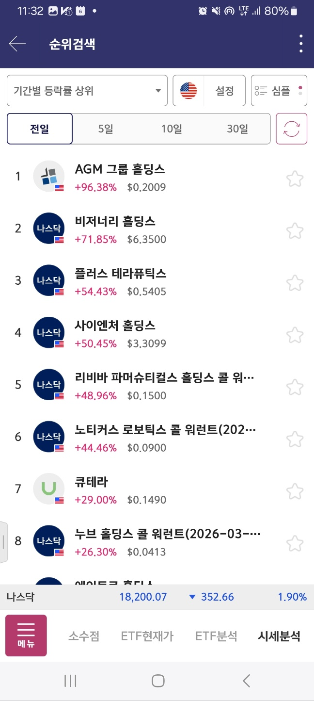 개장 초반 고른 차트. 4위로 올라오는 사이엔처. 하지만 급락한다. 하락 후 상승점 잡는다. agm은 개장후 급등. 1회 하락 후 다시 상승.