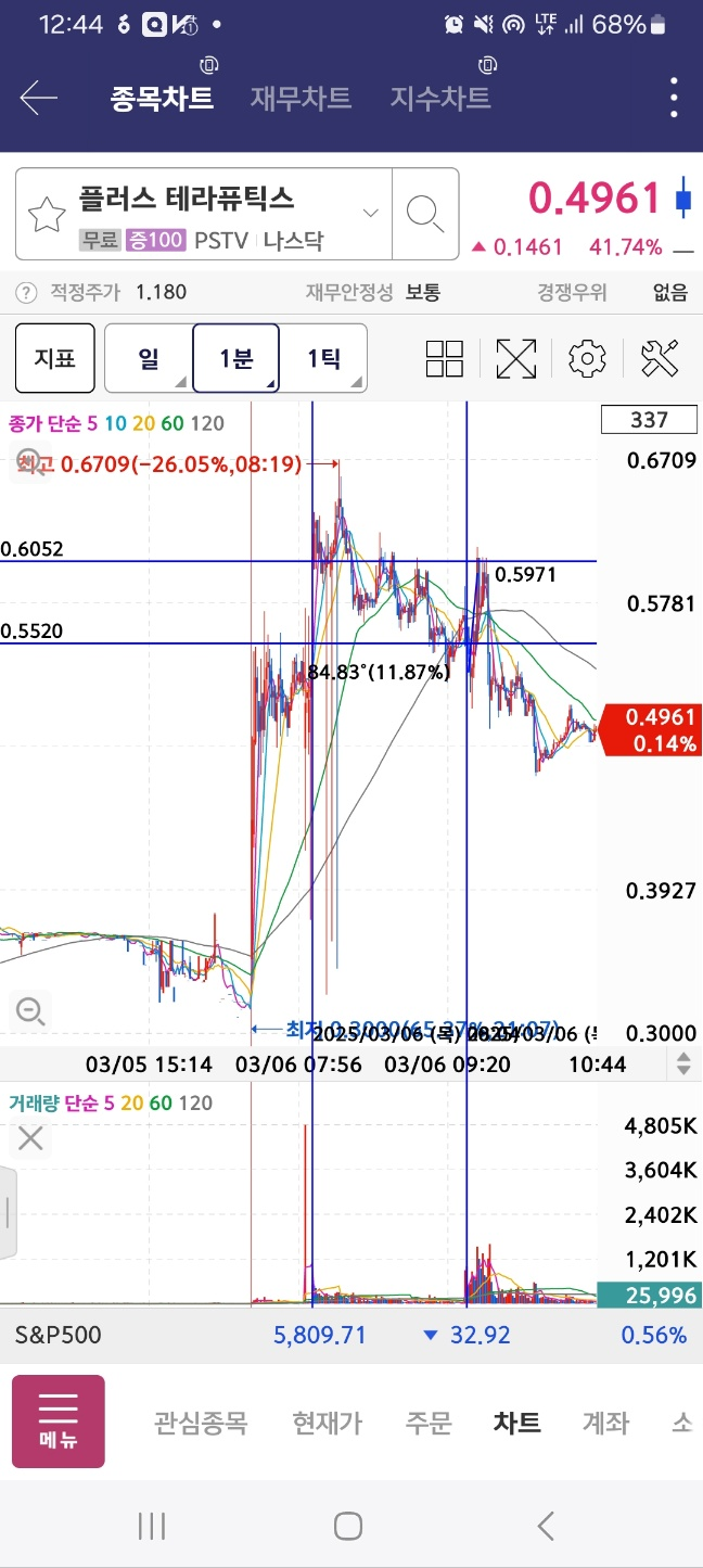 10시에 체크한 종목. 플러스 테라퓨틱스가 올라와있다.