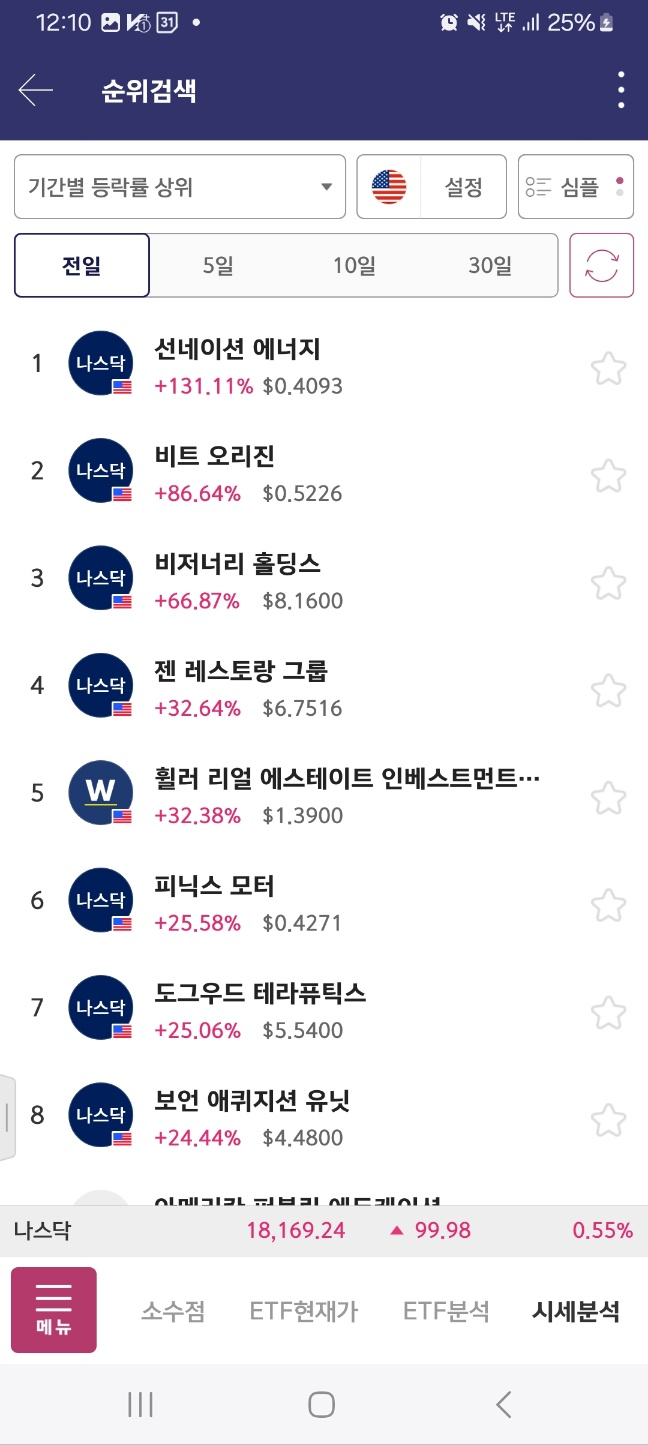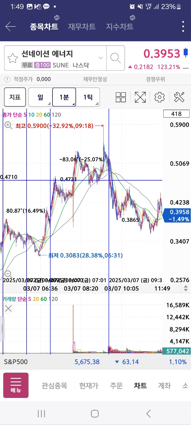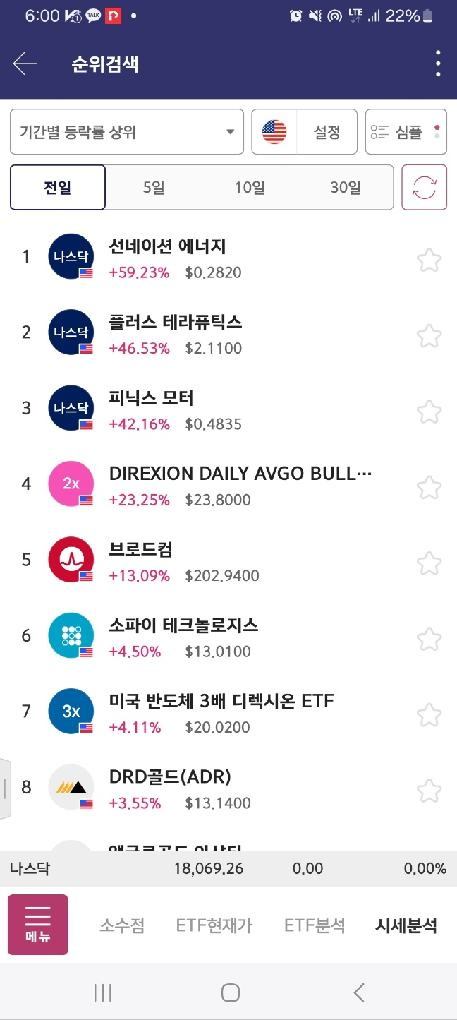9시에 올라온 종목. 선세이션 에너지. 개장 전에도 높은 상승을 기록한다.