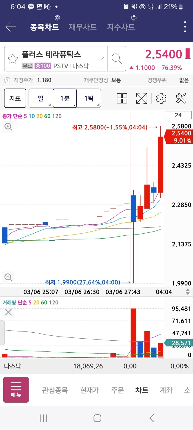 플러스가 거래량 9만 이상 기록하며 시작한다.