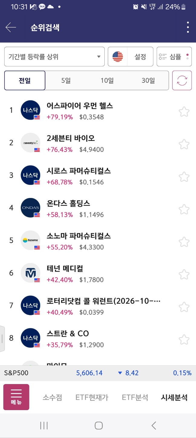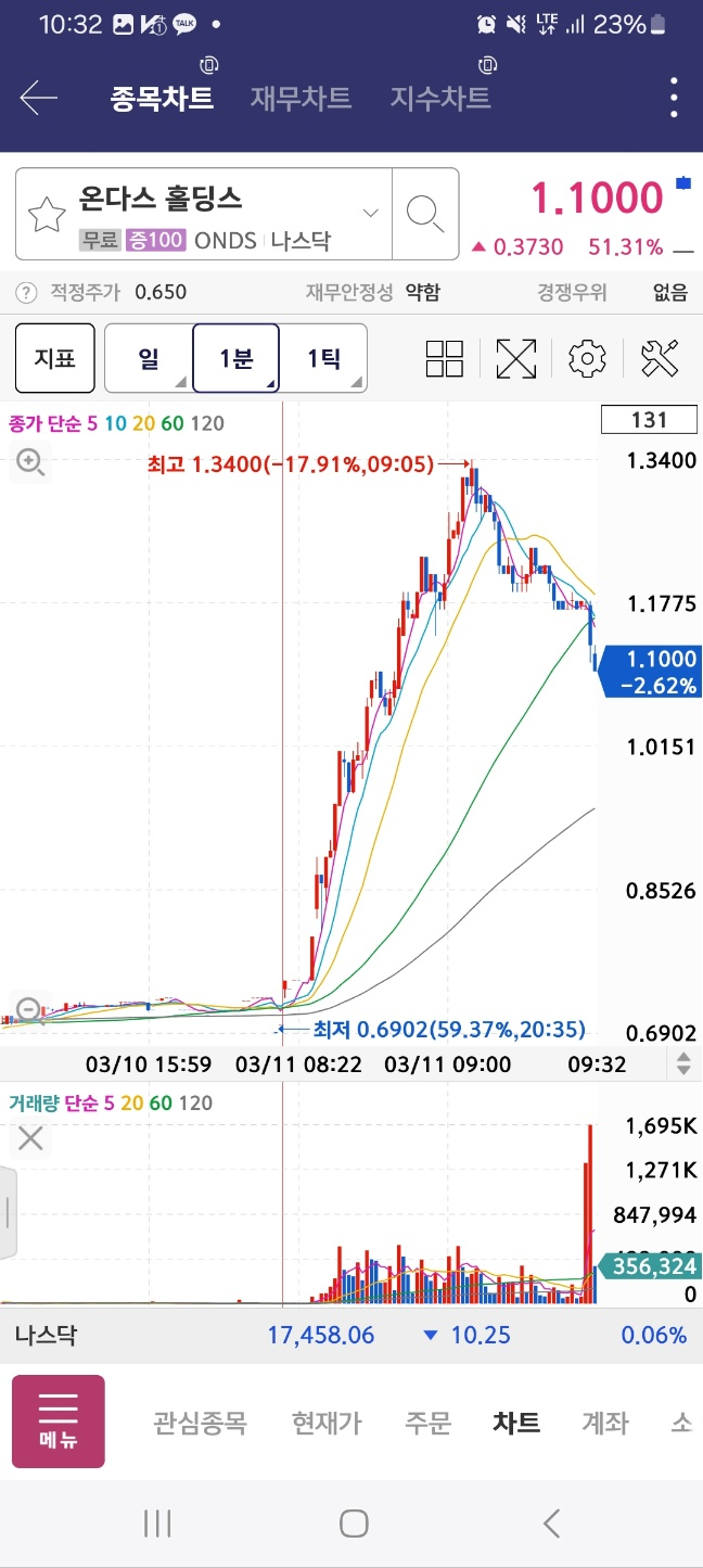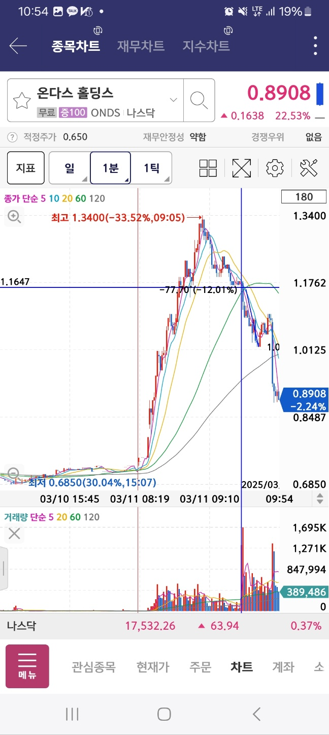 4위에 있던 온다스가 거래량이 올라와서 봤다.