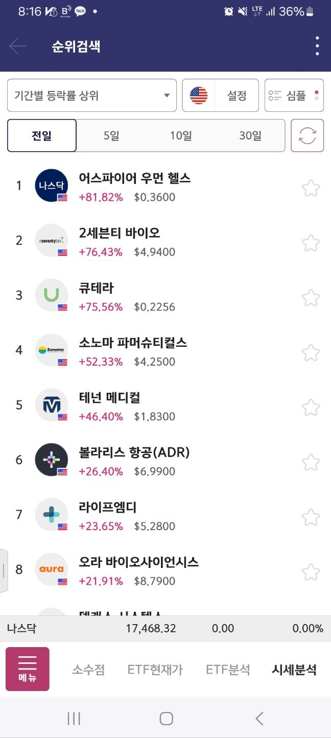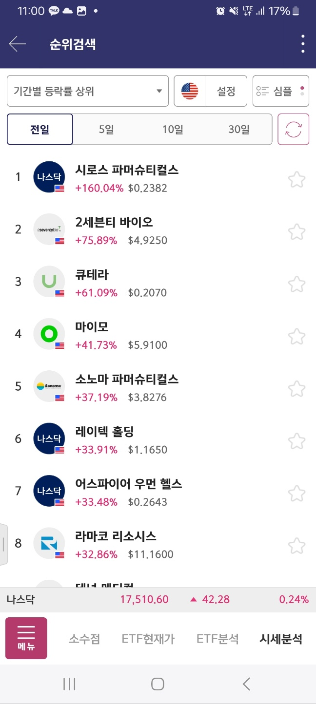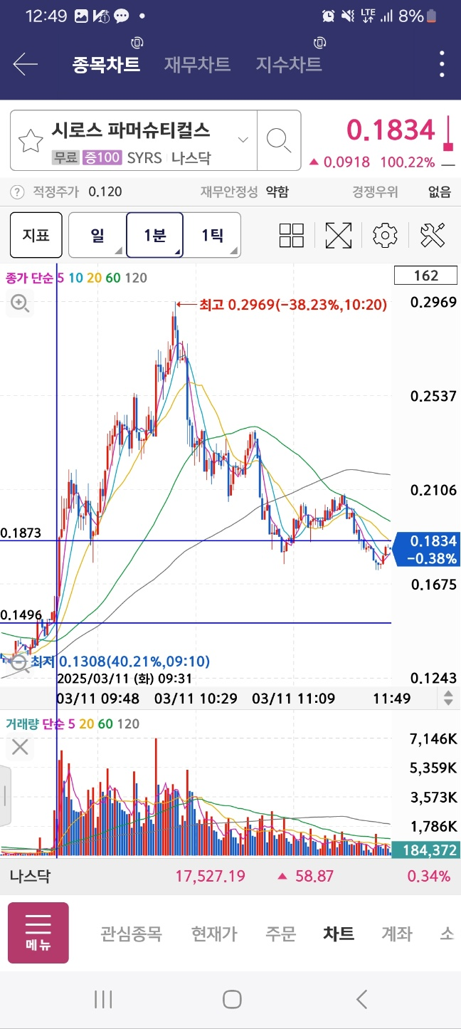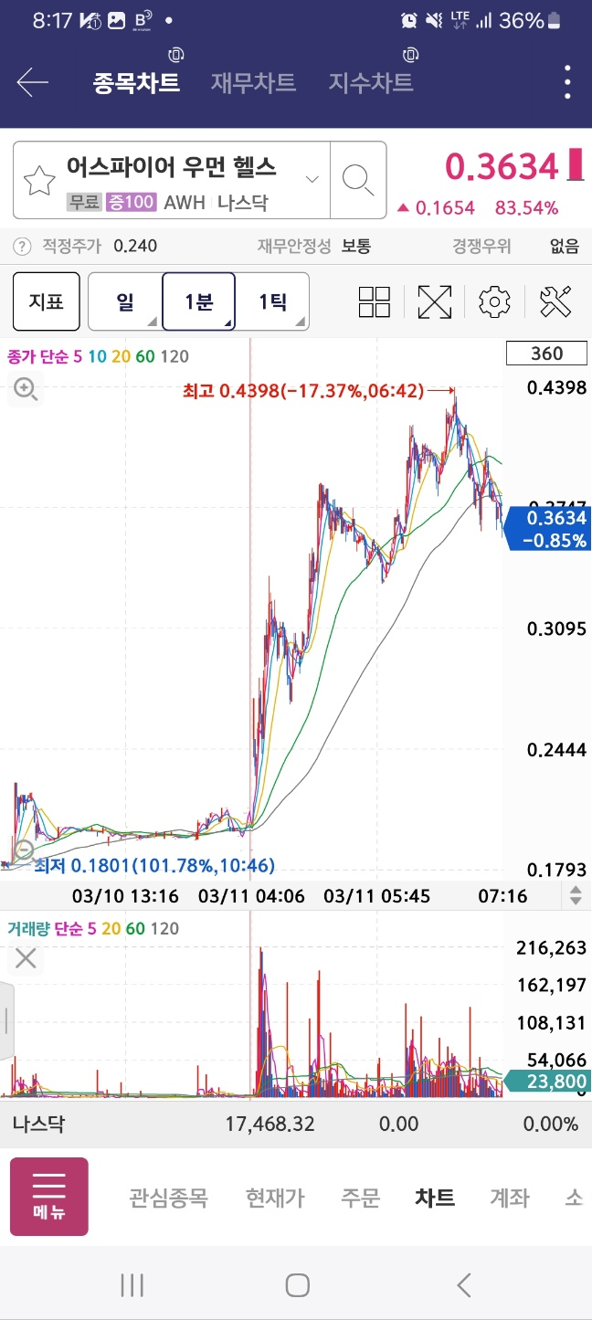 4위에 있던 온다스가 거래량이 올라와서 봤다.