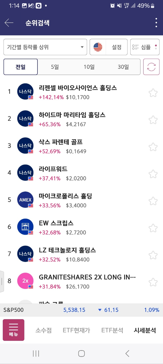 리젠셀은 거래량 적은데 잘 버티면서 올라가서 이날 가장 높은 지점에서 마감.