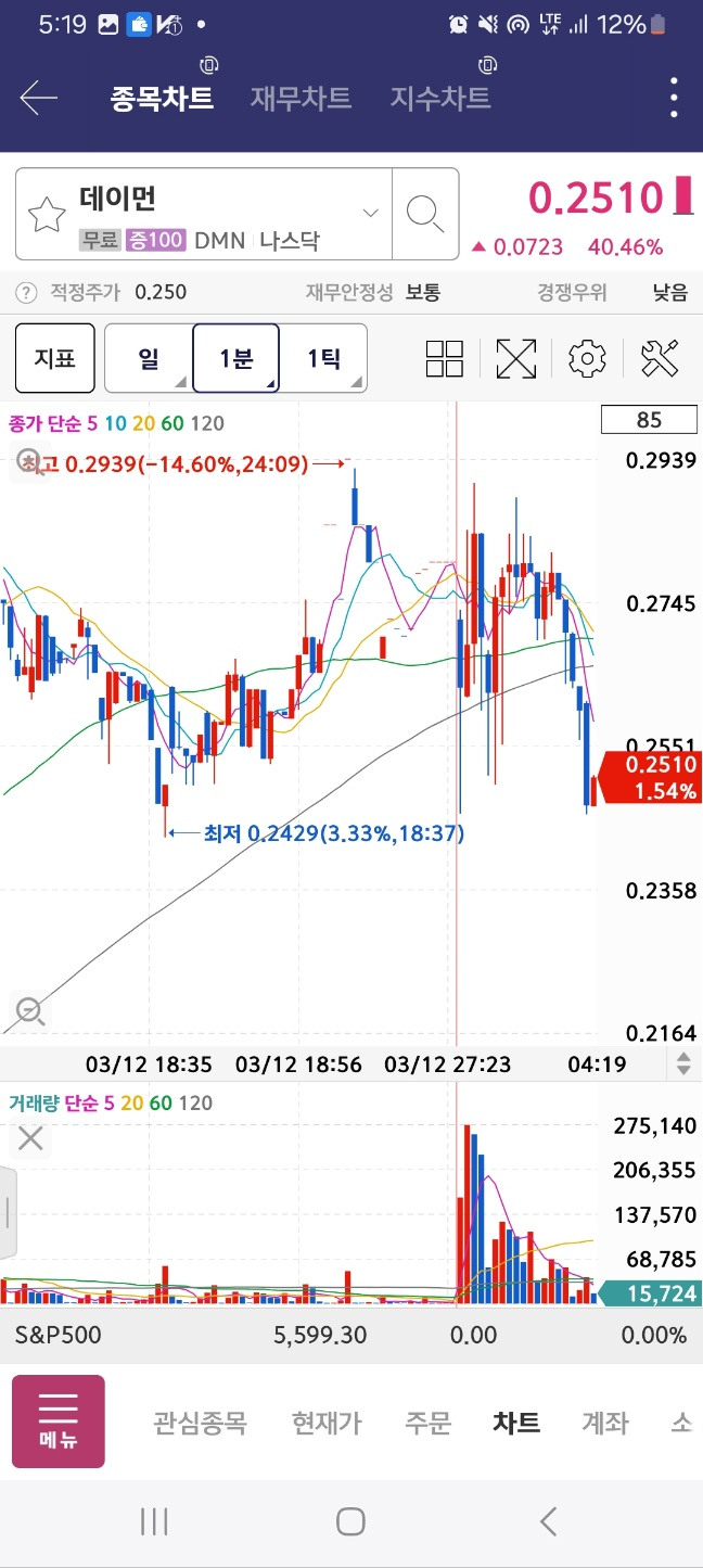 극 초반 세이프앤. 거래량 많지 않고 초반에 급락한다. 반면 하락하지만 거래량 증가한 종목 데이먼.