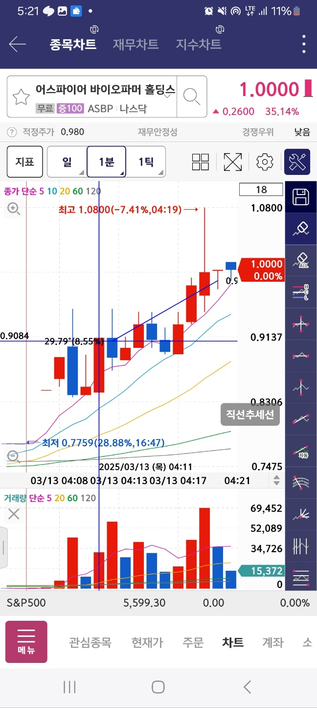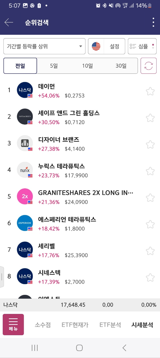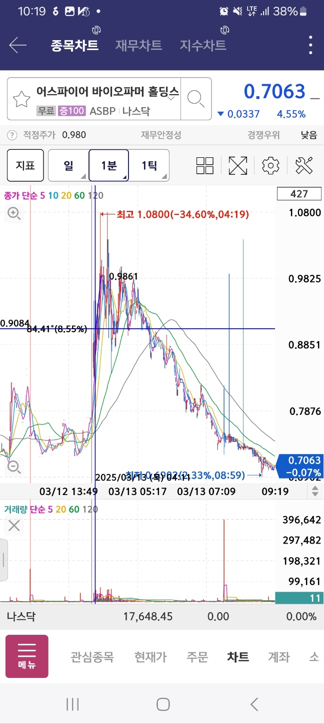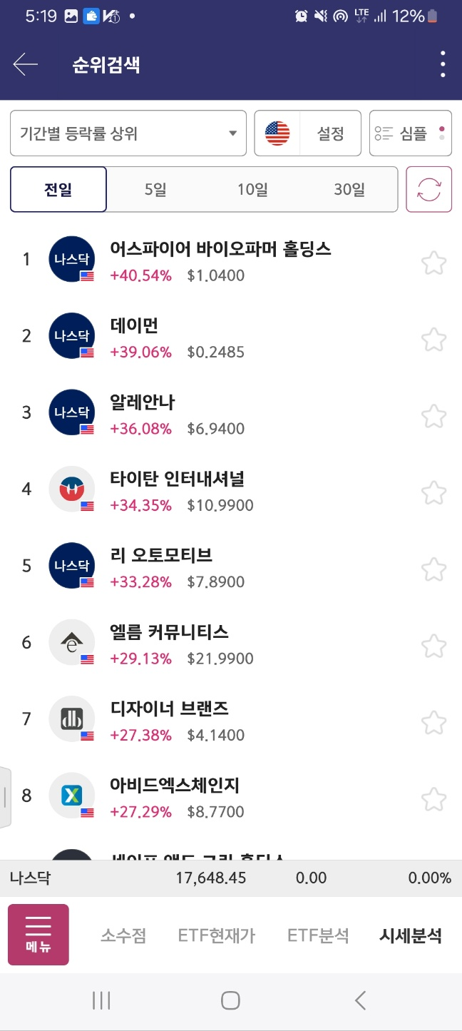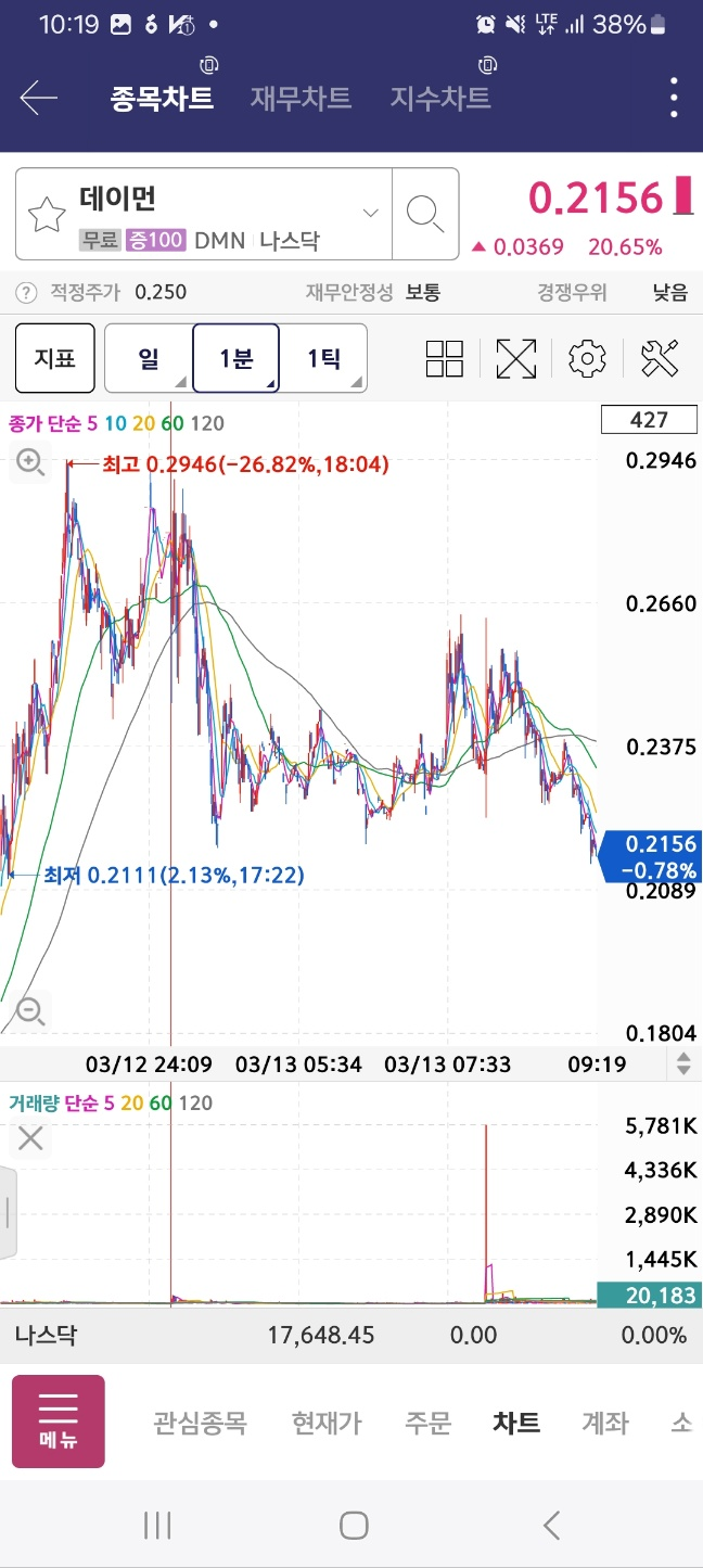 개장상황. 3위 에이바나. 거래량 5만 적다.