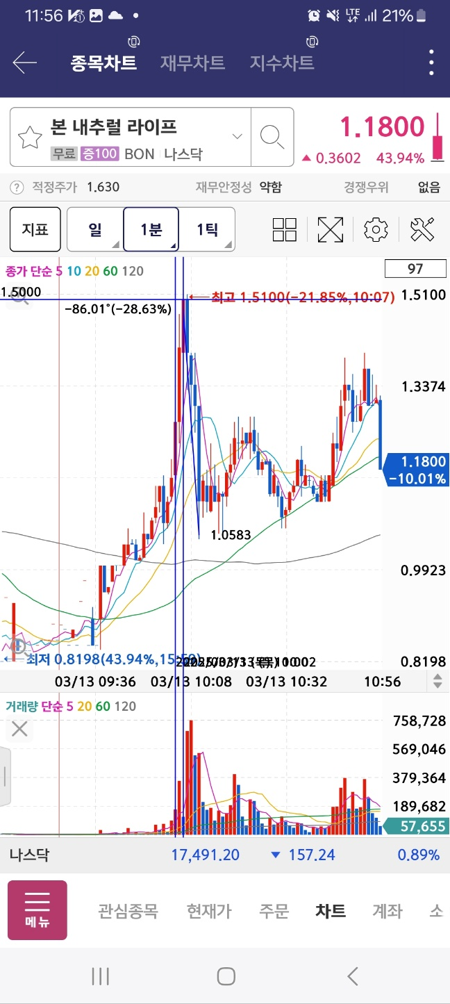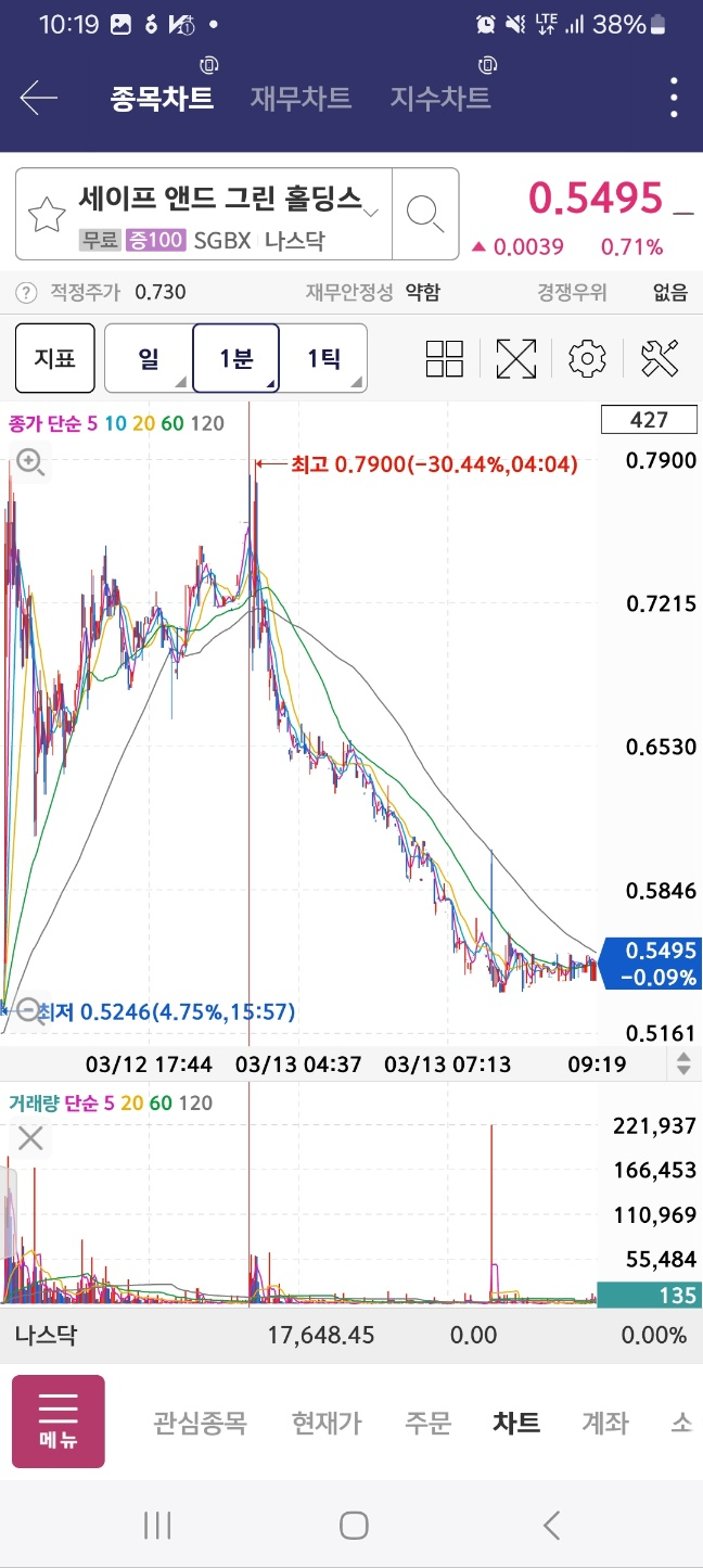 개장 후 30분에 나타난 또 하나의 멈충 종목. 이렇게 딱 맞는 시간에 멈추면 조심해야 함. 급락 가능성.