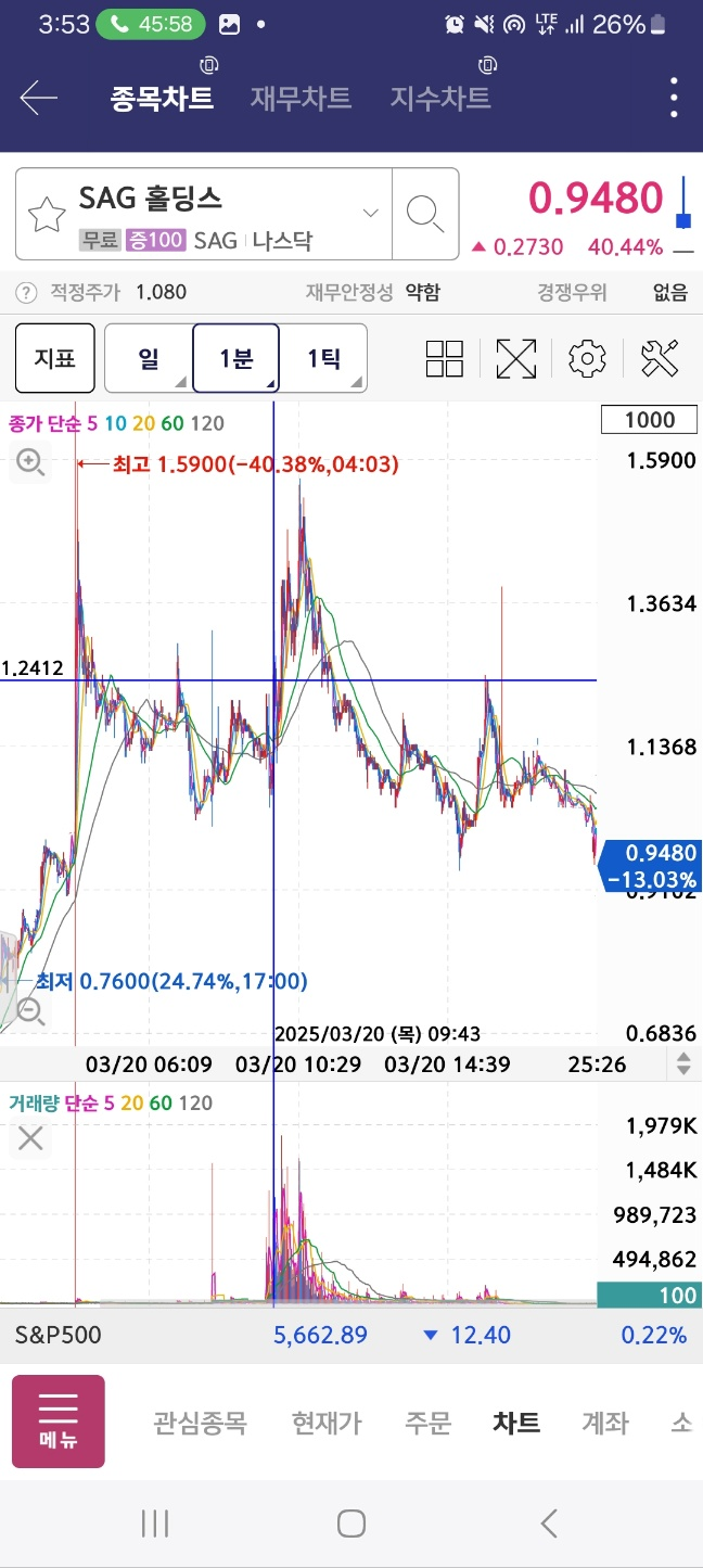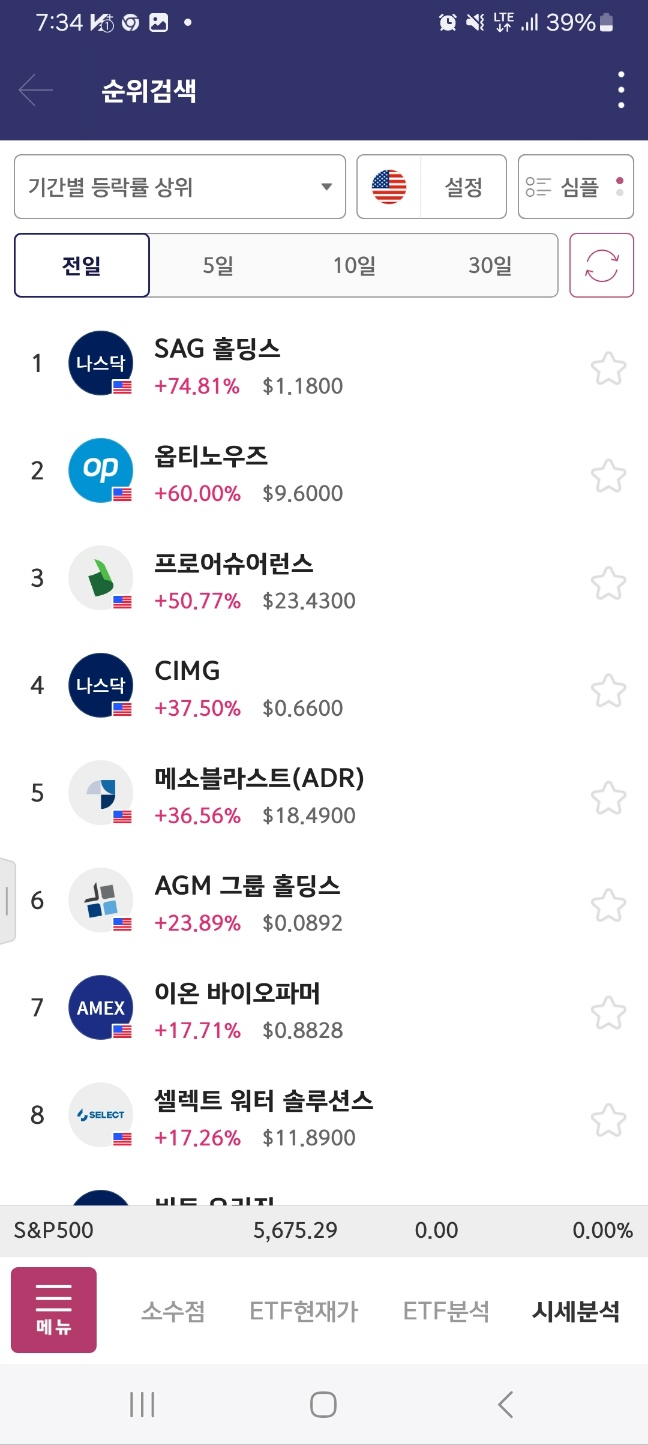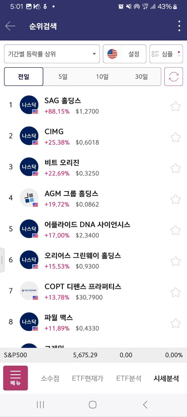 SAG 개장 후 가장 높이서 출발. 이후 한번 멈추지만, 10분정도는 지켜낸다. 하지만 이후 하락한다. 초반에 짧게 잡을 것.