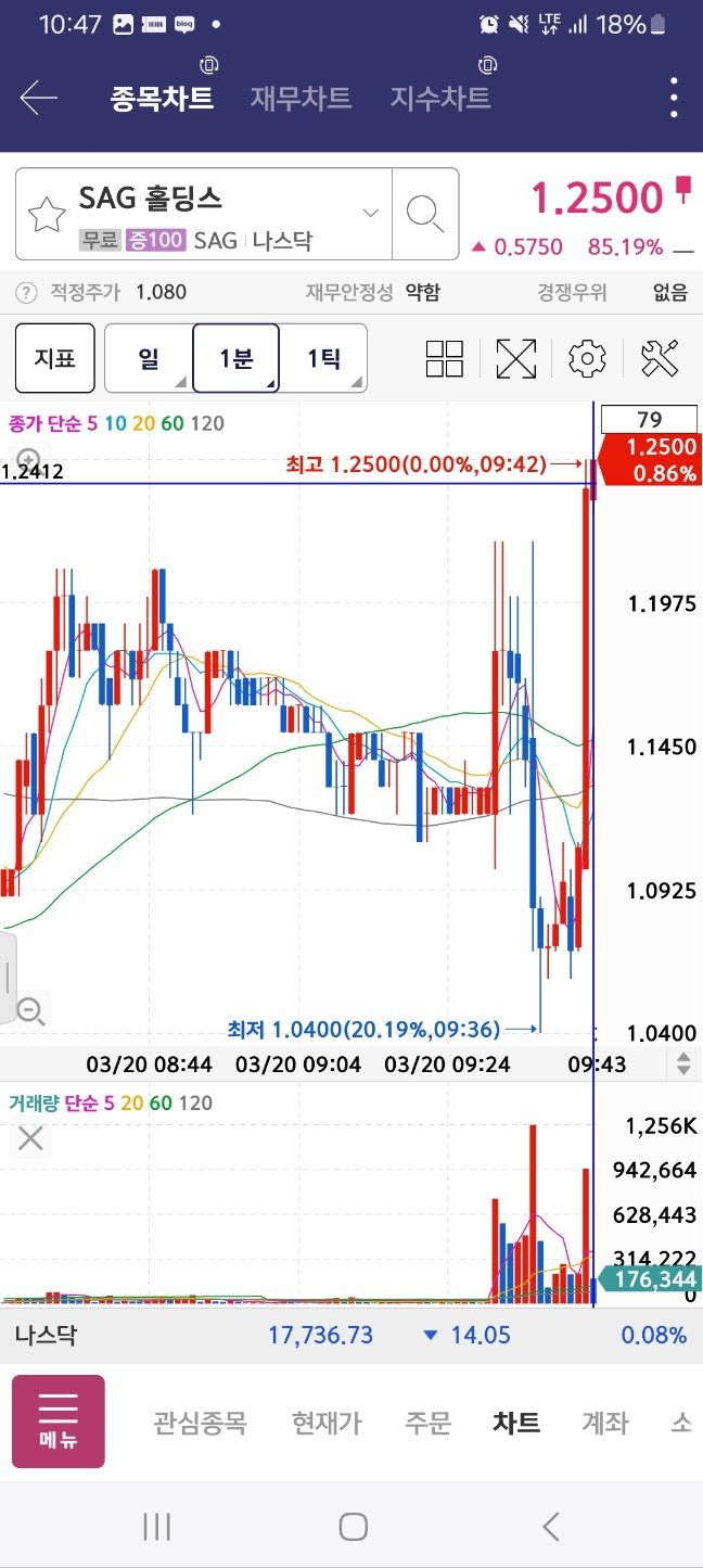 개장후 지속상승한다. 9시반이 개장으로 되어있으니 이후 5시간 30분동안 상승. 체크한 지점에서 2배 정도는 상승한다.