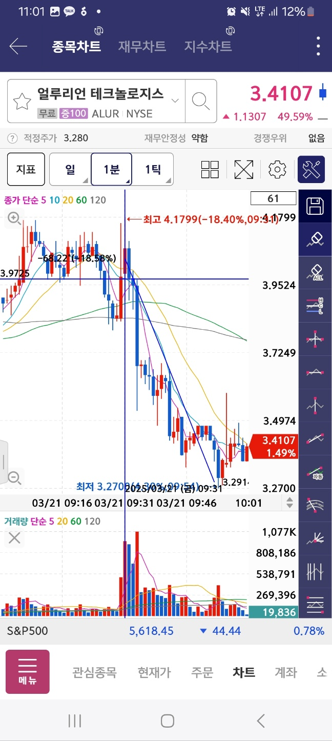 임팩트 급락하며 9시 30분 시점으로 돌아온다. 해당 지점부터 다시 오르기 시작. 전고점 향해서 올라간다. 개장 후에 이렇게 수급 들어오면서 등락 반복시, 하락 마지막 지점에서 잡는다.