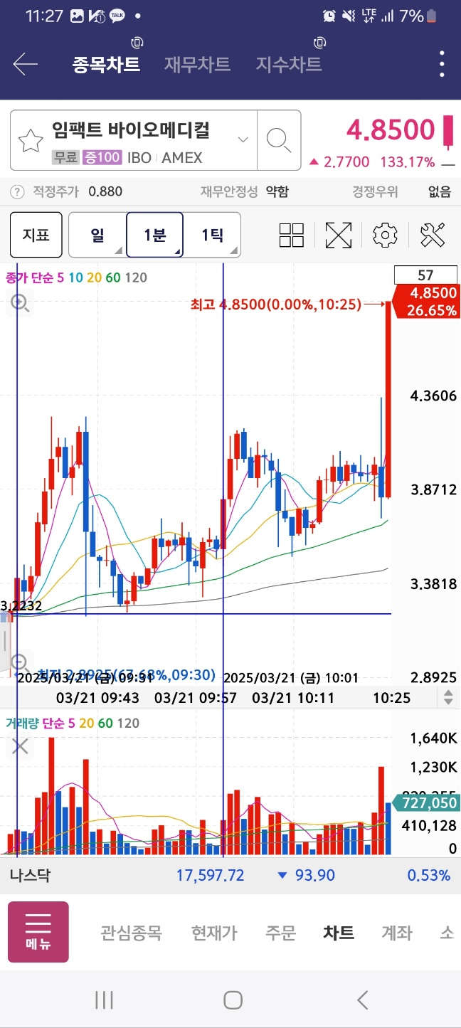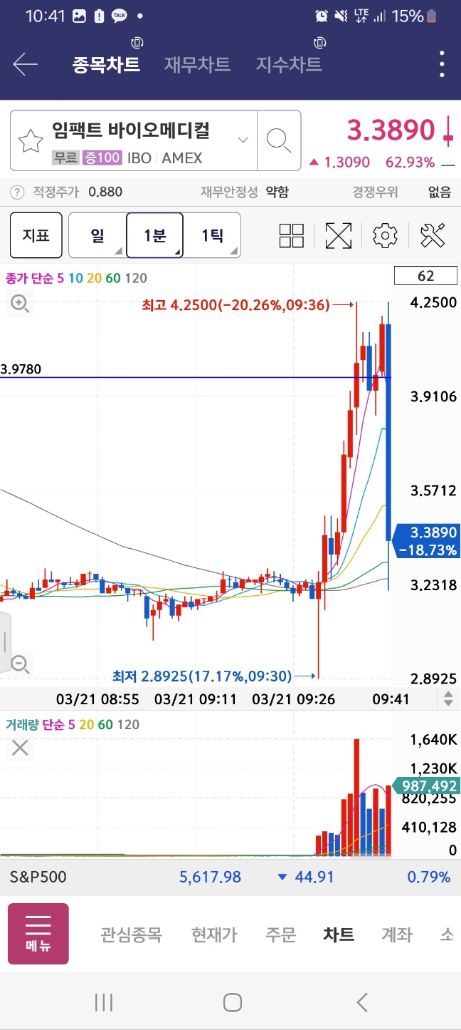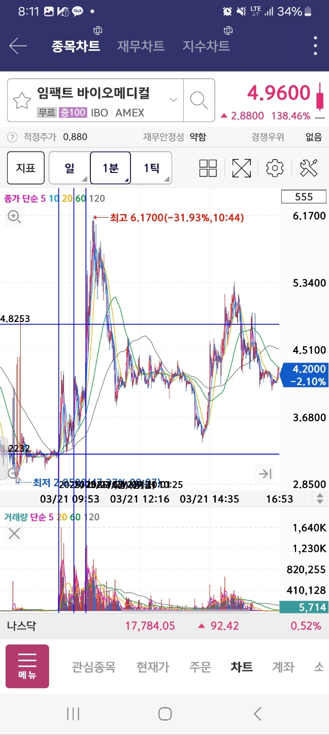 최종 차트이다. 임펙트는 해당 지점보다 더더 높이 올라가면서 6달러까지 돌파후 마감한다.