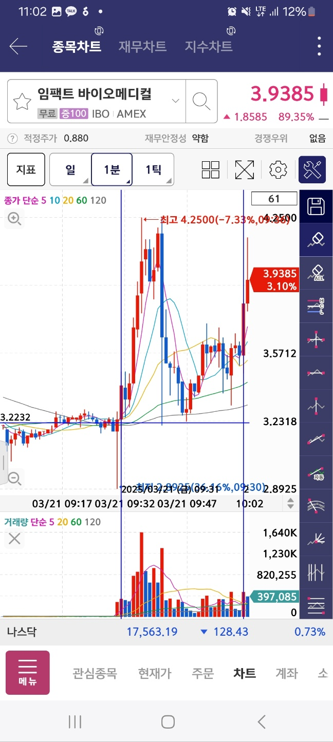 초반흐름은 비보는 거래량 줄어들면서 매도량 나오고. 일루도 거래량 올라오지만 급락하고. 임펙트가 오히려 슬슬 올라온다. 하지만 거래량 엄청 많진 않다. 주가 고려하면 괜찮음