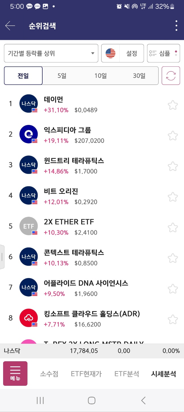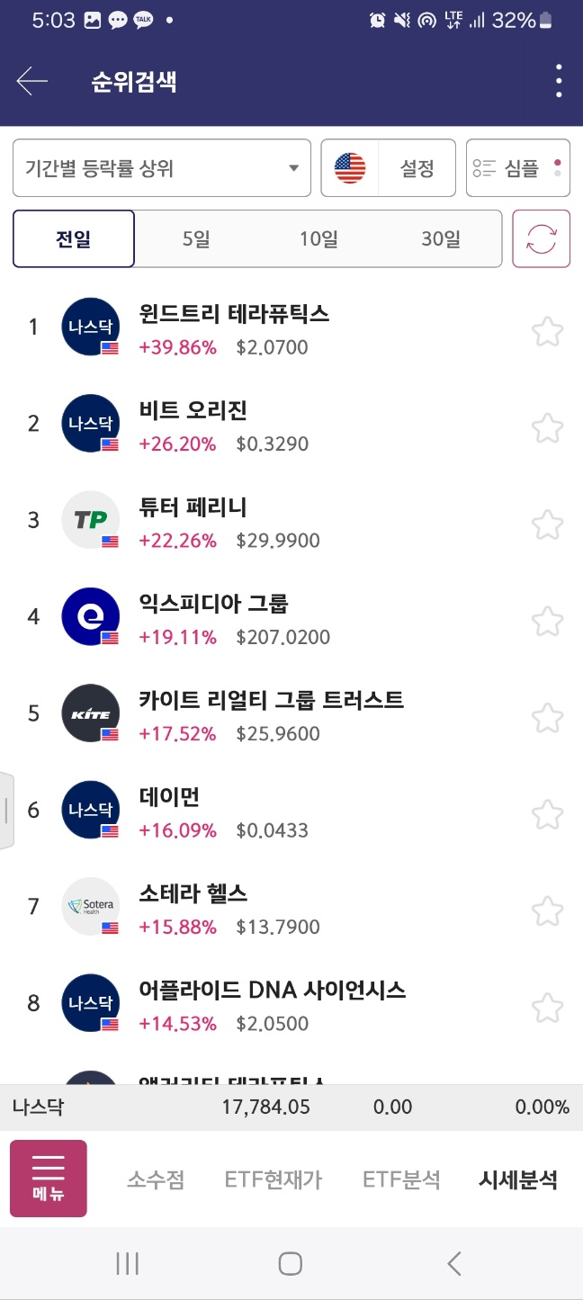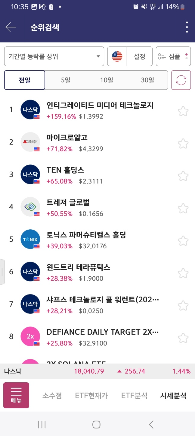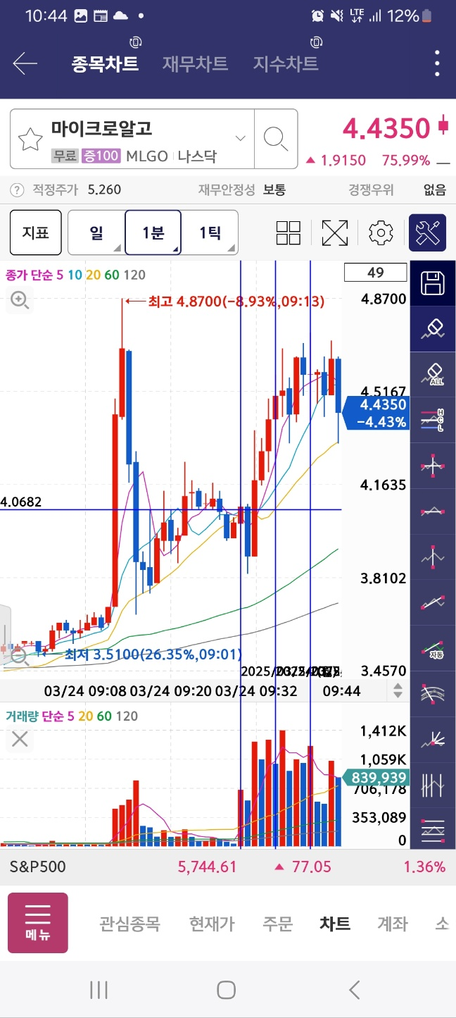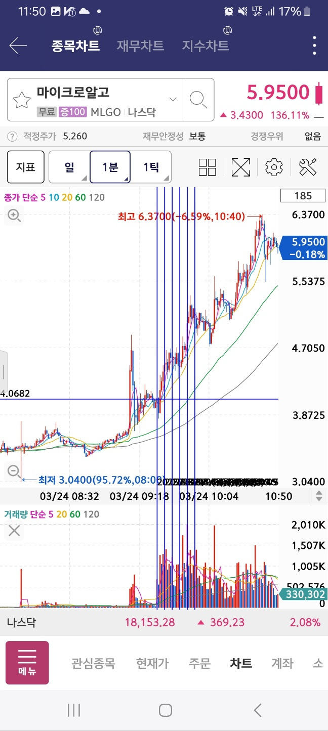 70프로대에서 시작. 개장 후 거래량 들어온 종목. 1000k 넘음. 직후 하락 이후 지속적으로 상승. 5분, 10분, 15분, 20분 계속 상승.