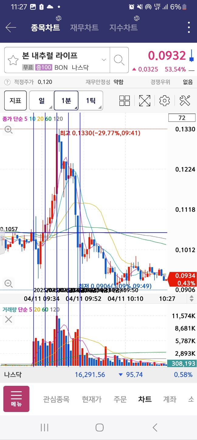 2위였던 본은 해당 지점에서 5분간 상승 이후에 하락한다.