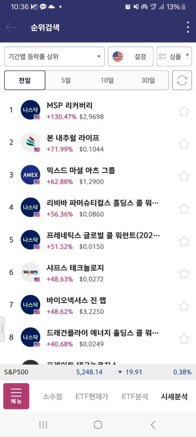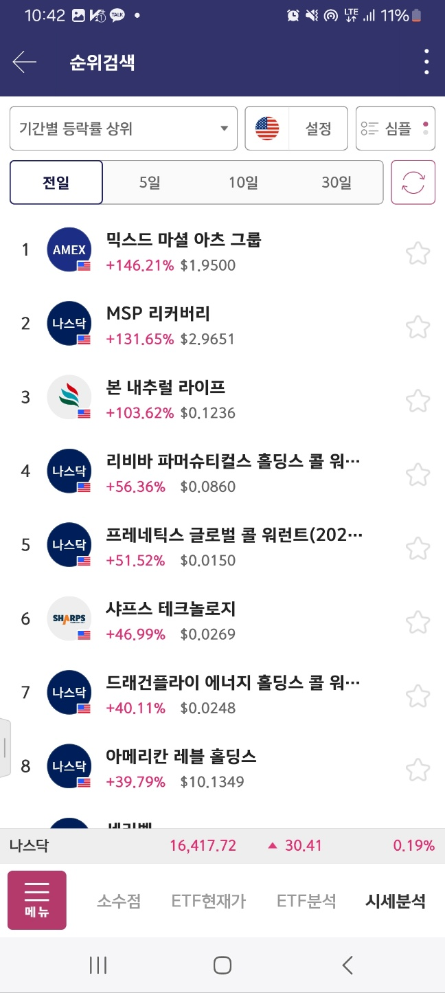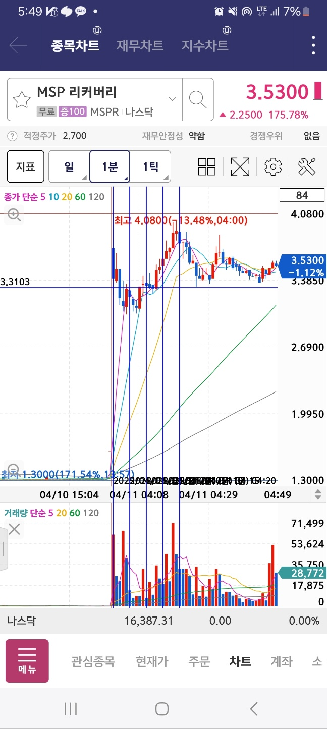 1위였던 msp는 저점 기록, 1회 상승, 다시 하락 후 1차 지점 체크 한 뒤로 하락한다.