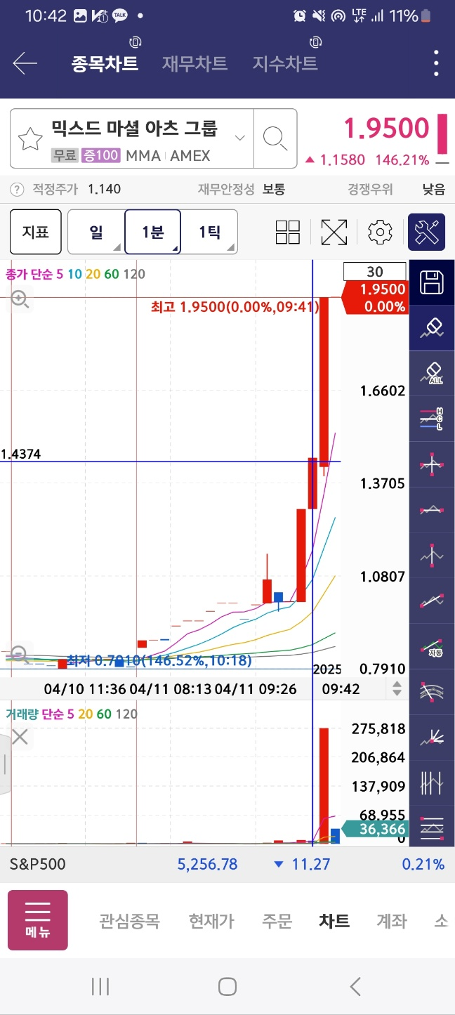 유일하게 진행되는 종목. 20분정도로 체크해보면 10분 이내에서 저점. 20분 지점에서 고점을 기록한다.