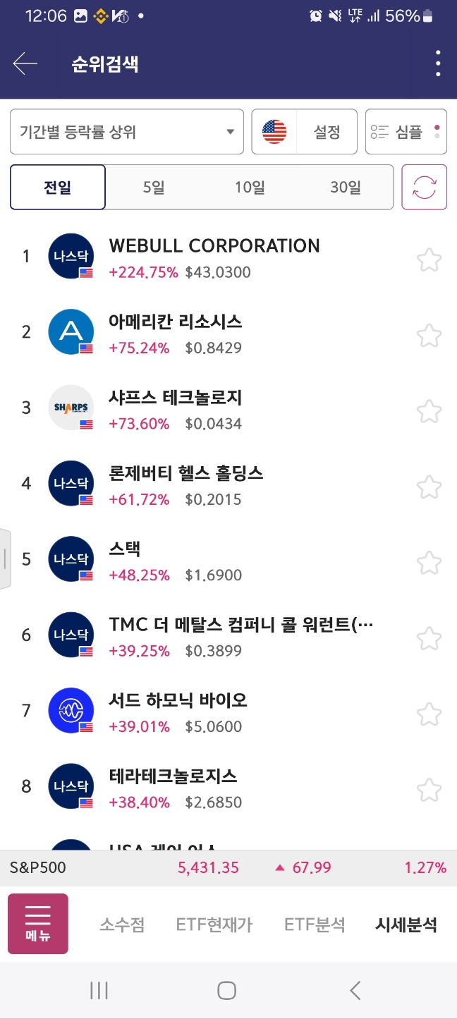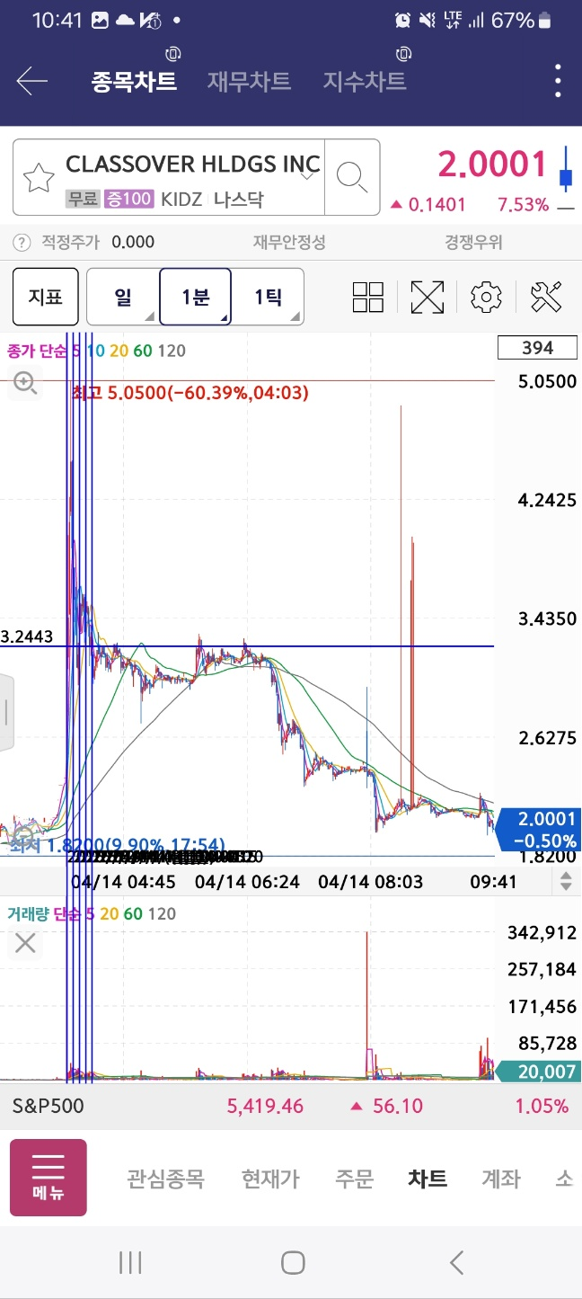webull이 가장 높이 있다. 단가가 너무 높아서 class로 갔다. 9분에 하락 한번 상승 한뒤에 하락한다.