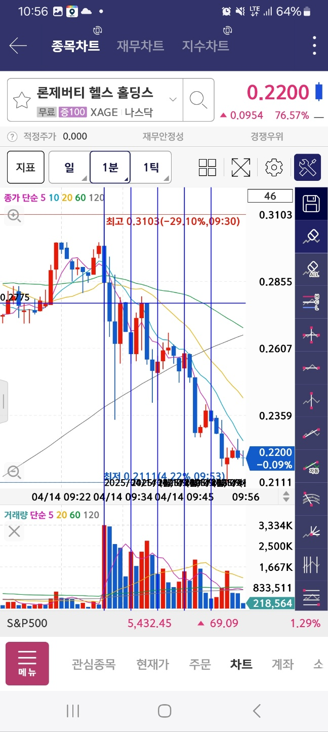 개장 기준 초반 20분 론제비티는 회복 못하고 하락.