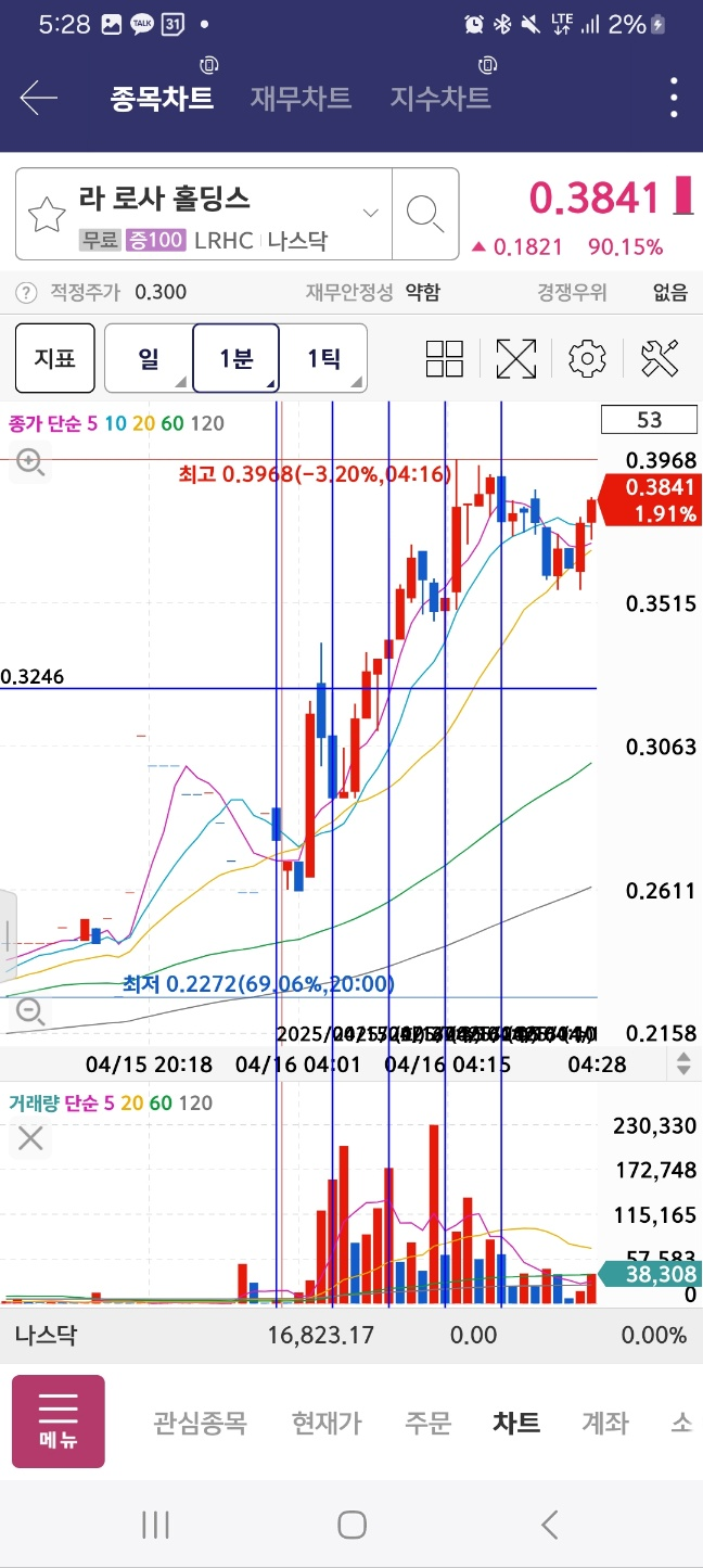 3분에 2등이던 종목은 결국 회복 못한다.