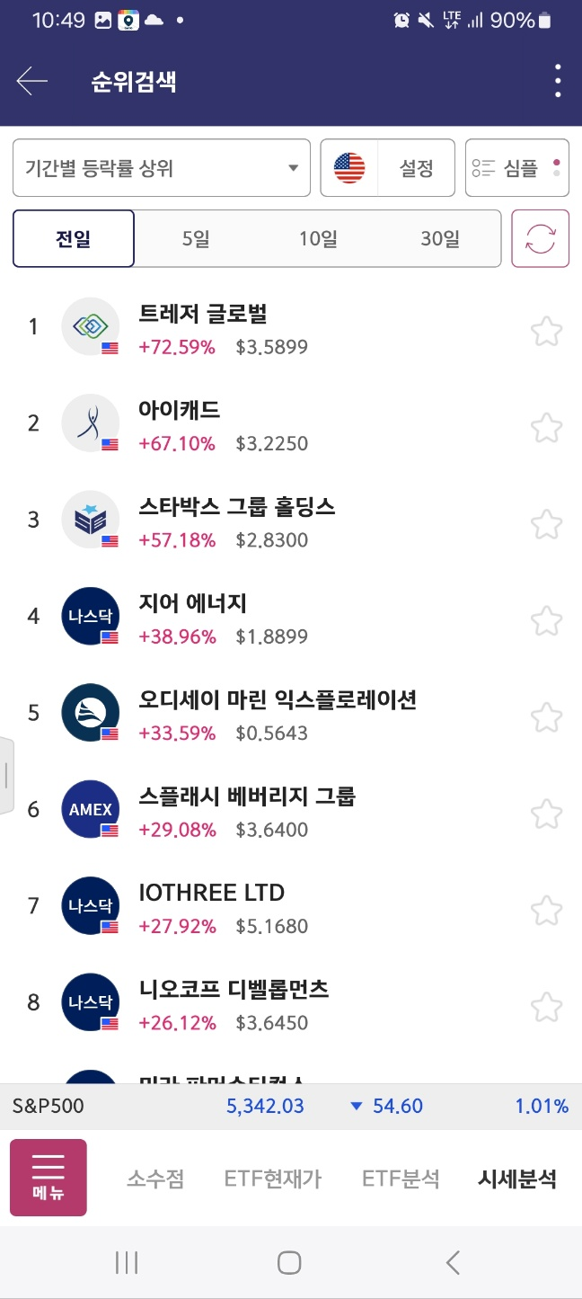 결과적으로는 나중에 올라온 종목들이다. 초반에 있던 종목들은 다 빠짐.