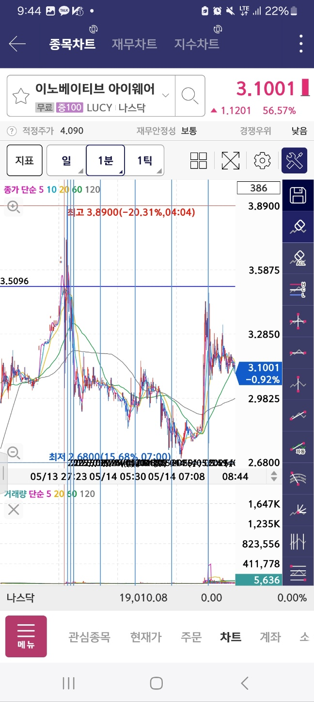 5시 - 이노 > -30퍼 하고서 올라온다 / 9시경 올라온다