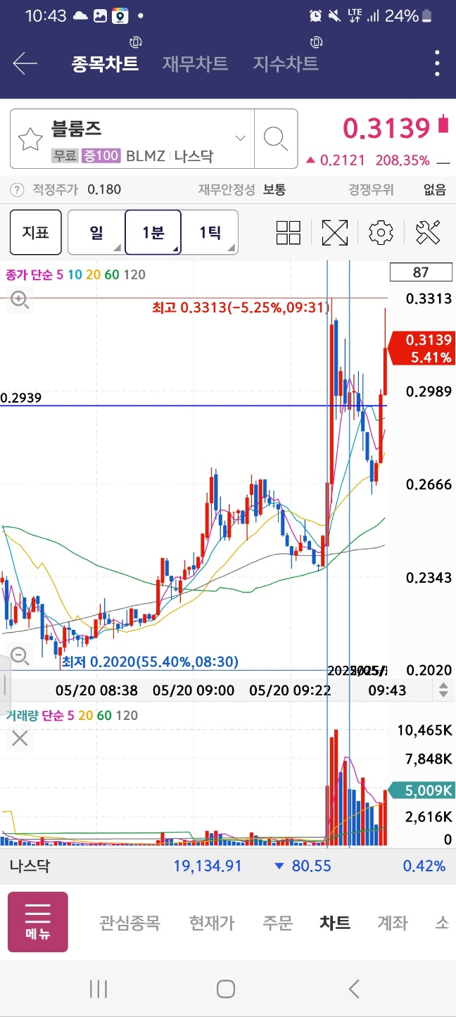 [10시40 이후 멈춤] 2~3분 이내로 20 단위 거래 / 10분간 / 가능하면 첫 상승만 잡기 / 거래량 증가하면서 급상승 동반 / 순위변동