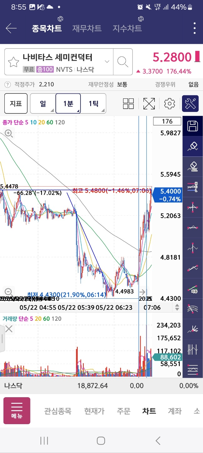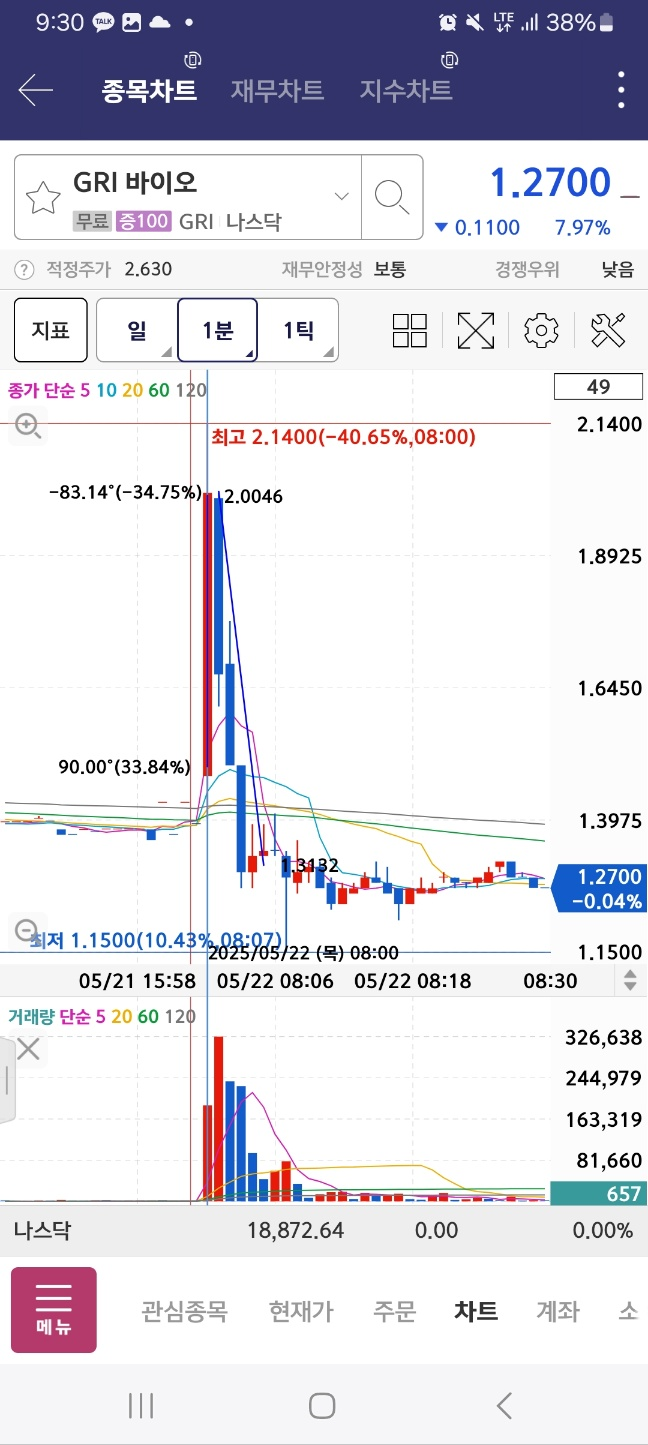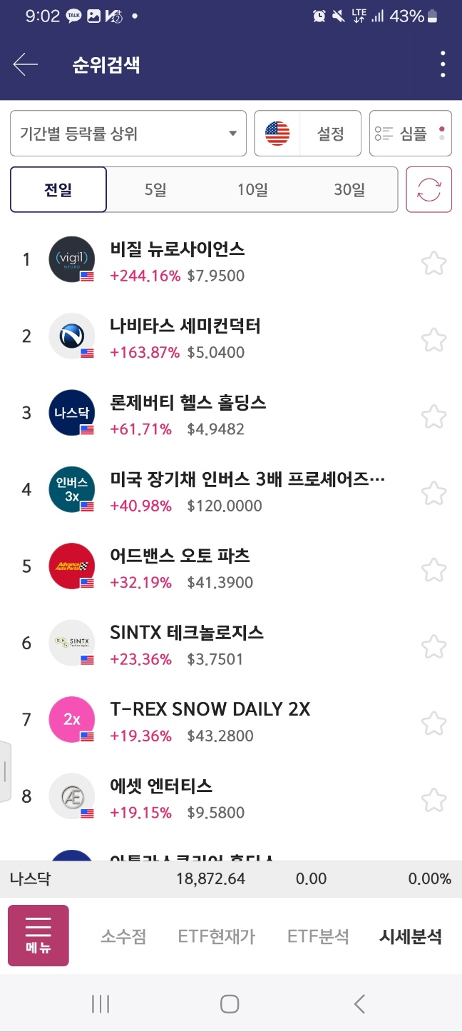 9시에 전형적으로 잘못들어간 종목. 이렇게 한번에 급하게 오르거나 혹 오르더라도 순위권에 진입을 못한 경우 주의해야 한다.