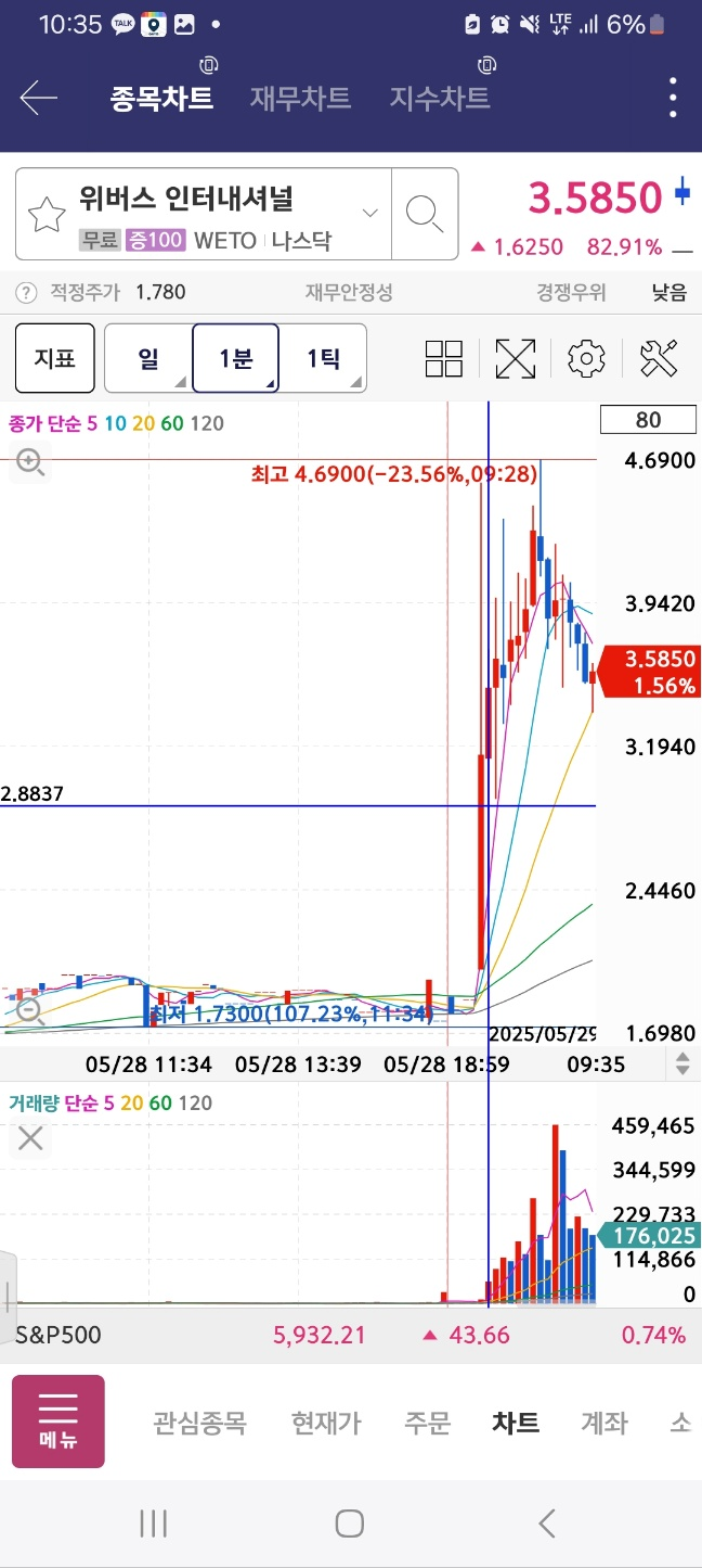 10분 구간 안에 들어간 위버스의 경우 / 이렇게 상승하지만 3분 내 패턴은 유지할 것.