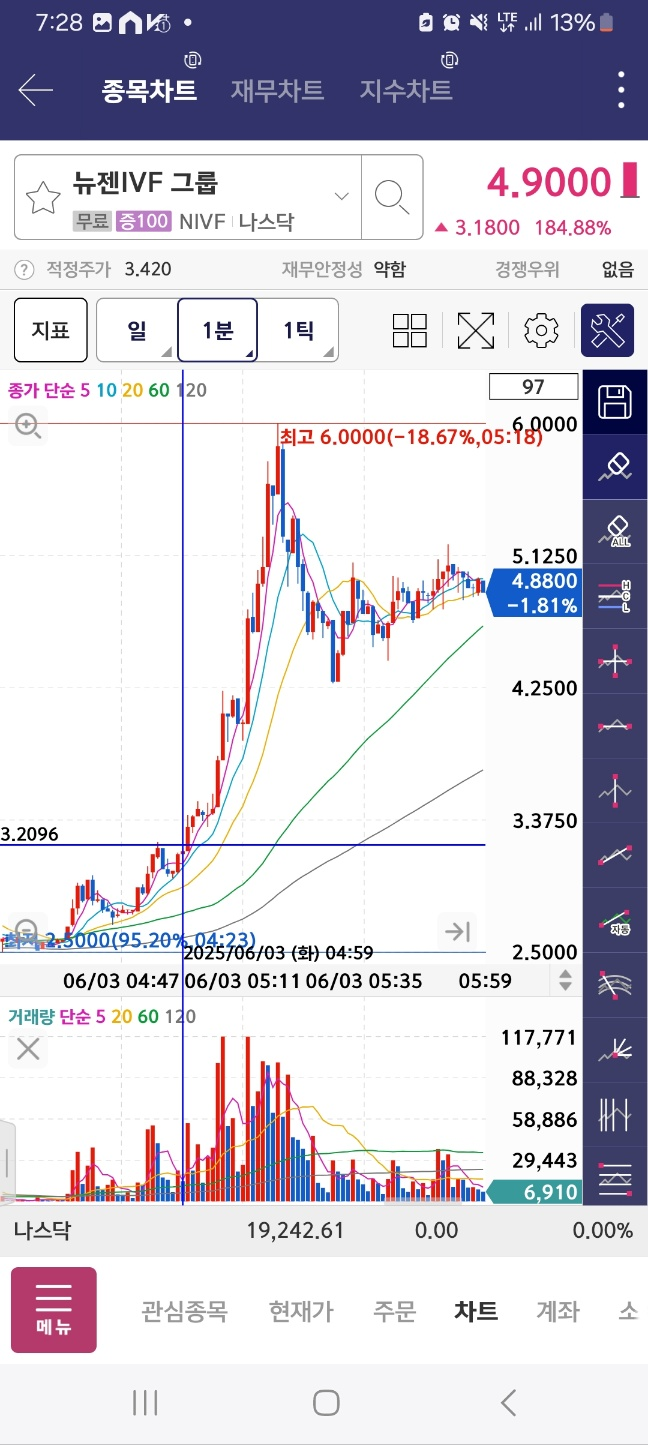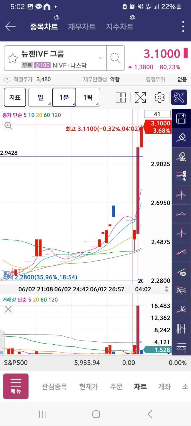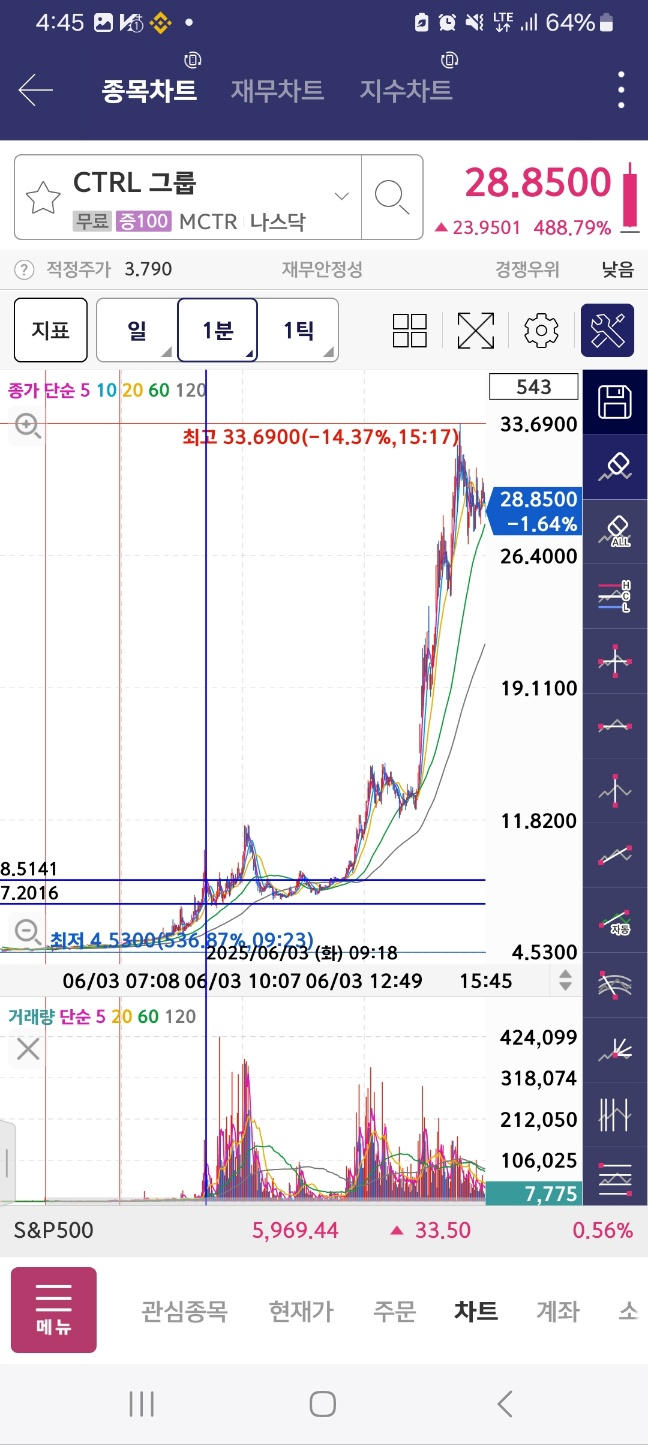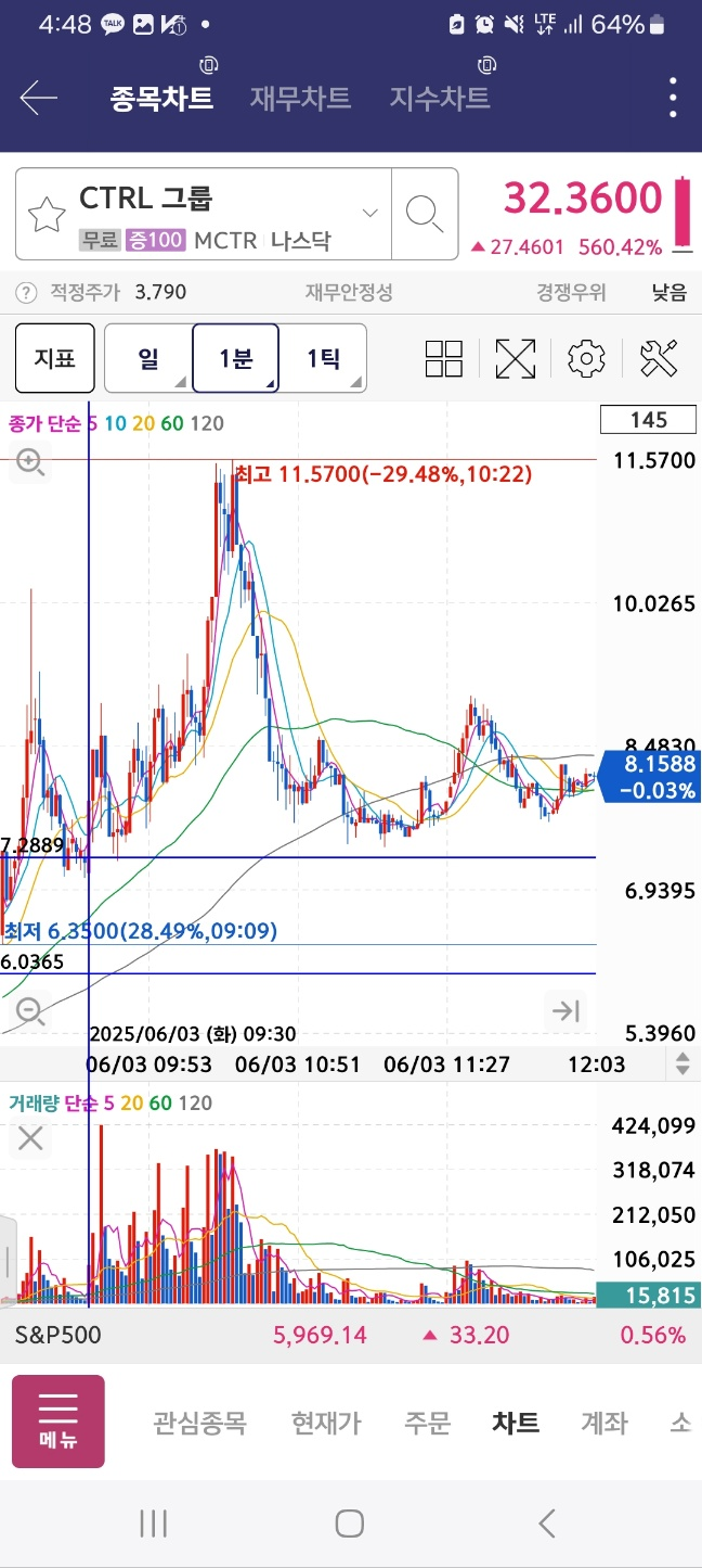 6시에 올라온 종목. 마찬가지로 초반에는 짧게 들어갈 것