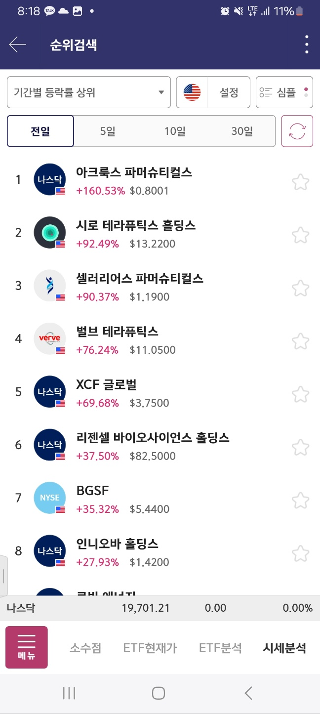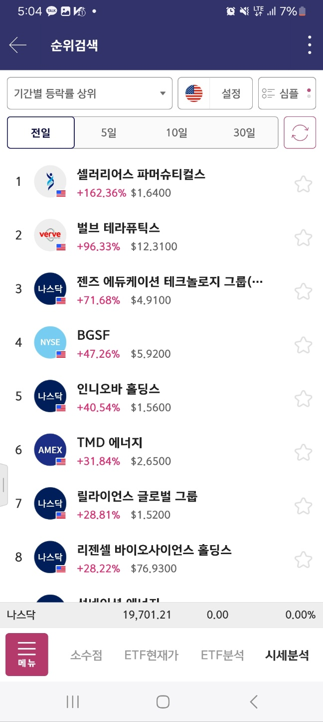 7시-1위가이미100프로가넘으면적어도80까지올라와야1위를바꿀수있음/적어도3위까지는오른상태에서매수해야함