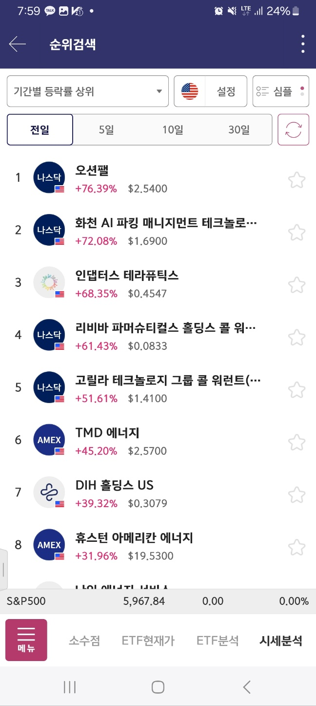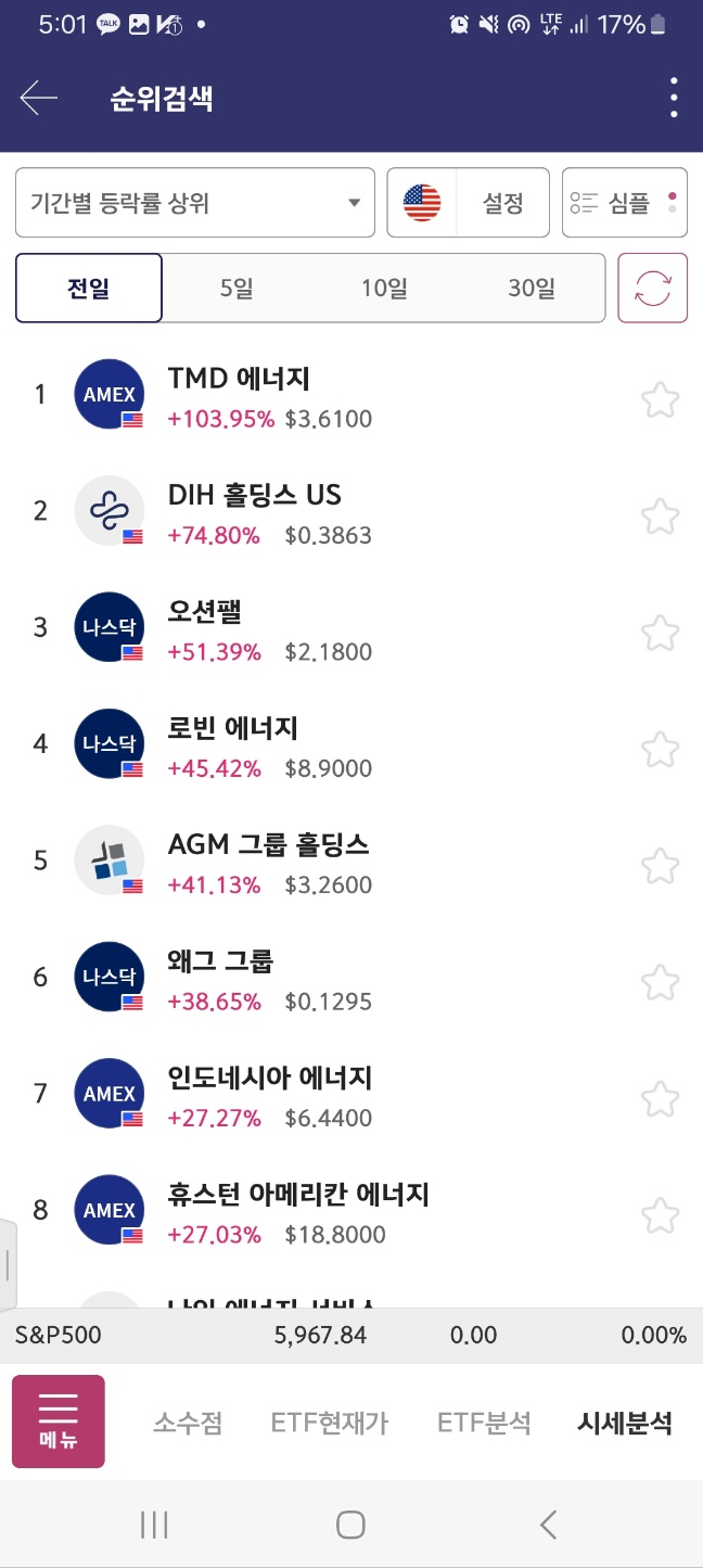 0500 짧게짧게 3종목이 1위를 바꾼다 / 시작이 약간 애매함 // 1분에올라온 TMD도 짧게 잡아야한다. 오션펠도 짧게.